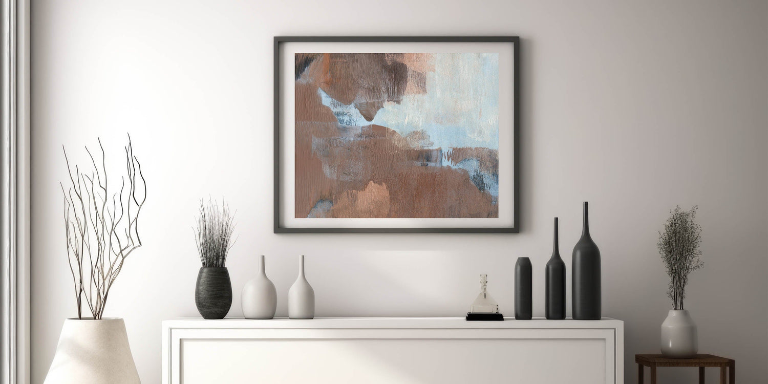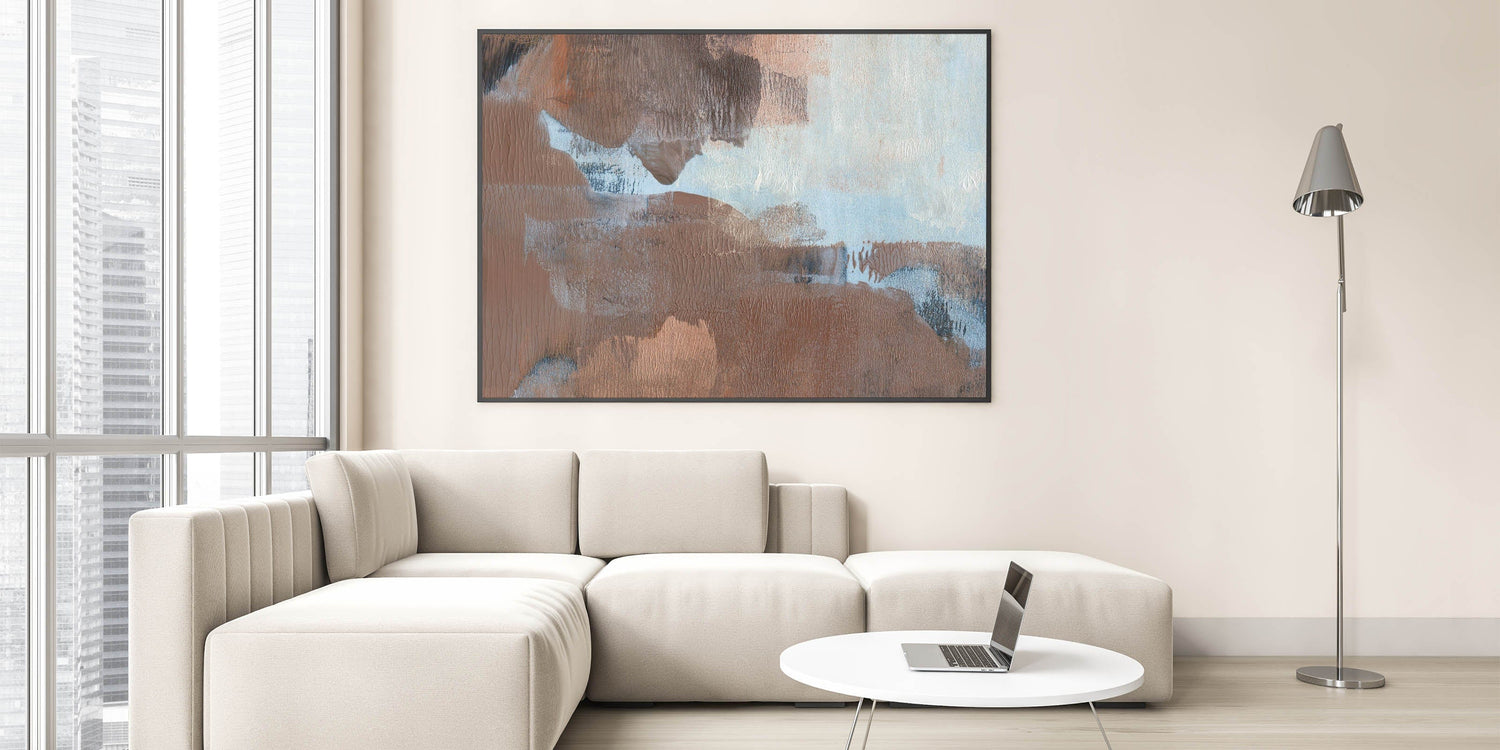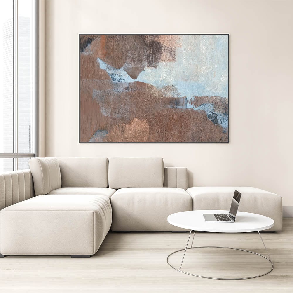 This beautiful piece from our Abstracts in Earthen Harmony collection combines earthy brown, blue, and cream tones to create a calming and balanced abstract composition. The fluid brushstrokes evoke a sense of natural tranquility, making this artwork an ideal addition to modern, minimalist interiors.