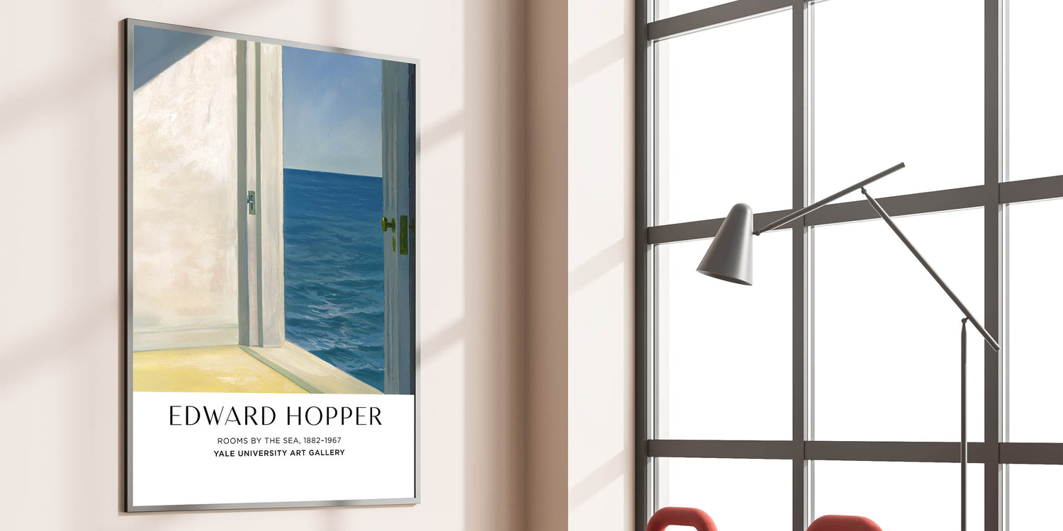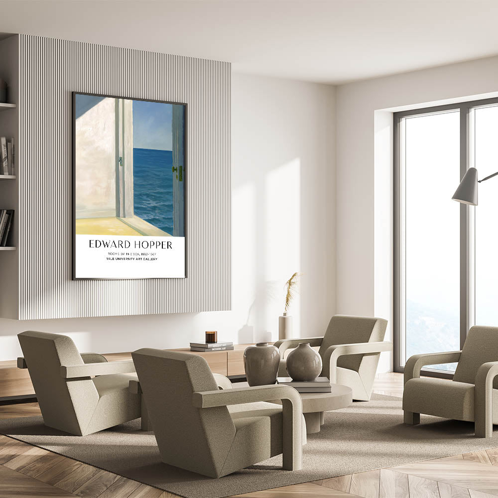 Bring the serene beauty of the sea into your home with Edward Hopper's "Rooms by the Sea, 1882-1967." This iconic painting captures the calm of an open door overlooking the ocean, blending Hopper’s signature style of realism with the peacefulness of nature. The bright sunlight illuminates the minimalist interior, creating a perfect balance between light and shadow.