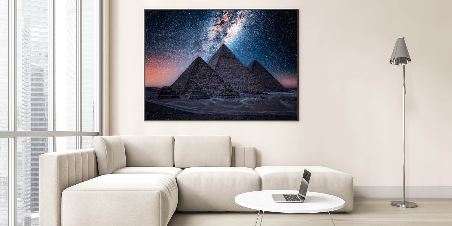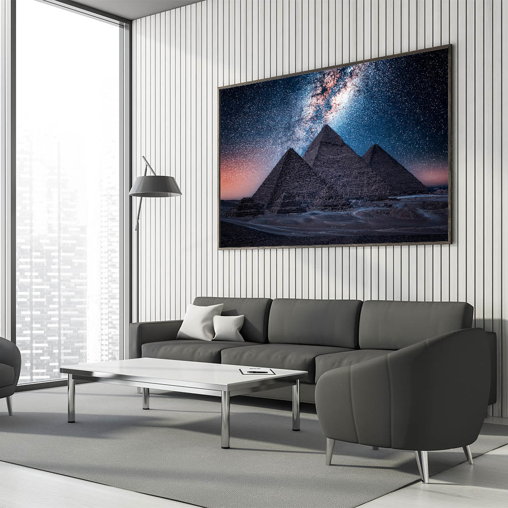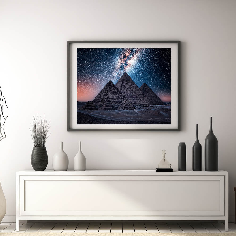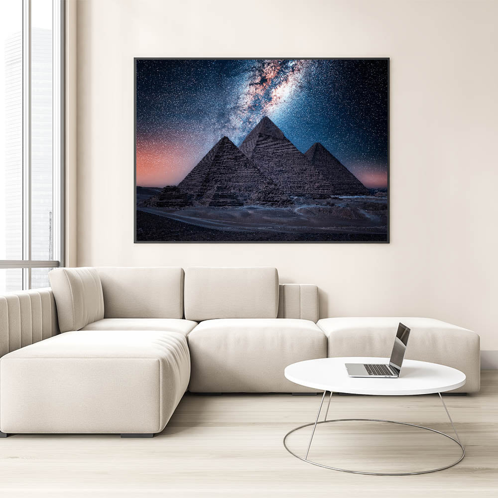 This piece of art is perfect for anyone who appreciates the intersection of history and the cosmos, making it a must-have addition to your collection. Elevate your space with this extraordinary portrayal of Egypt's wonders.