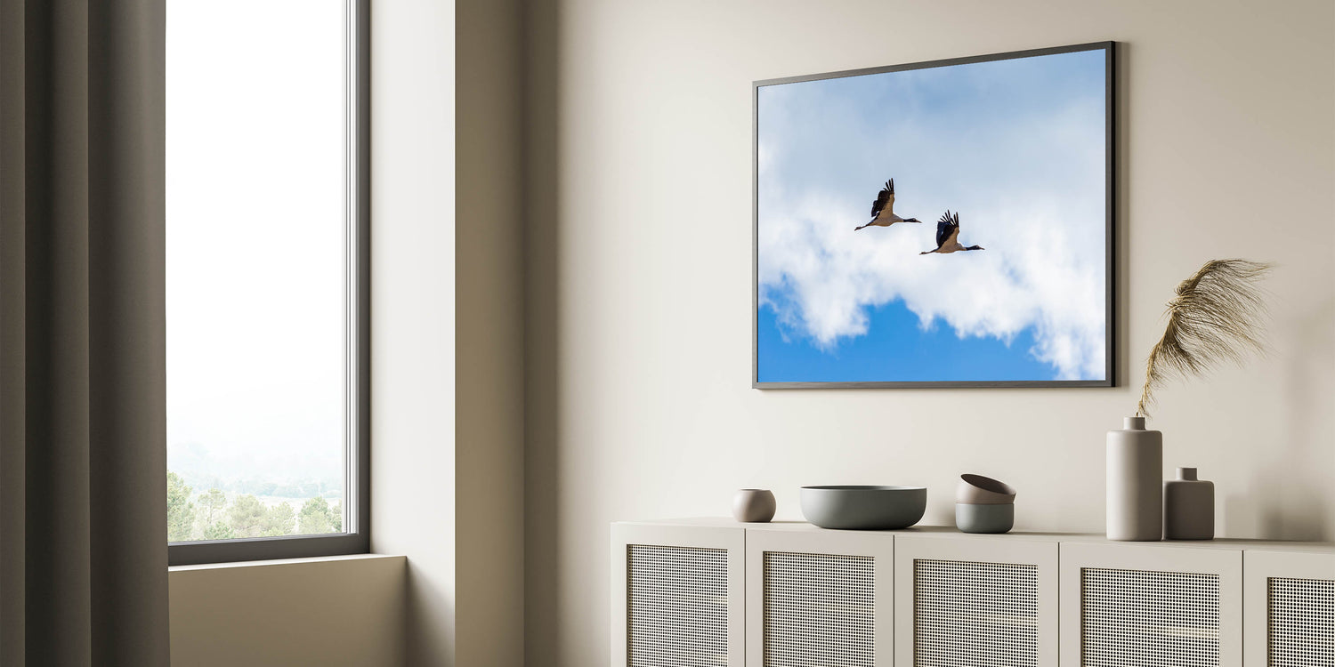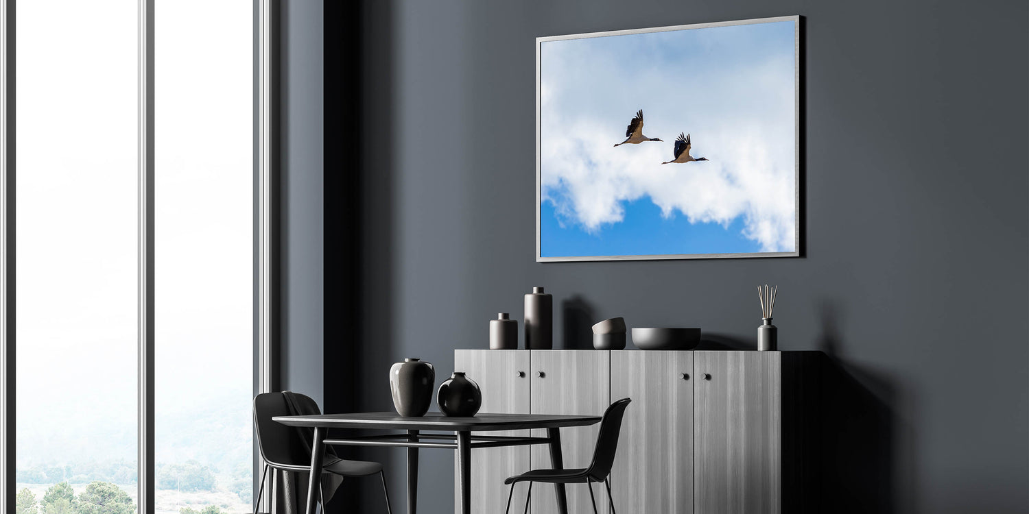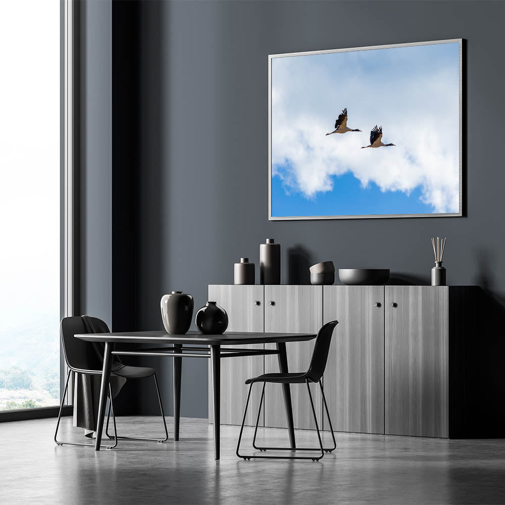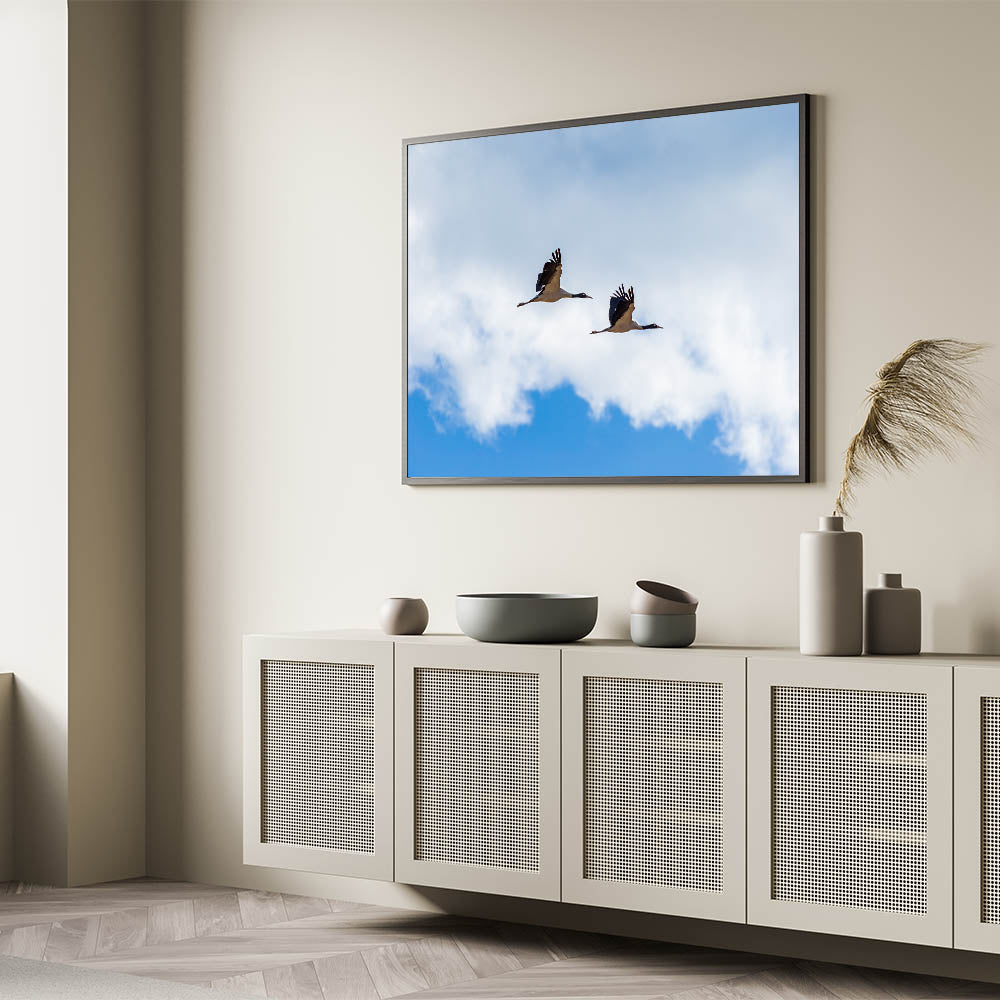 • High-Quality Canvas Prints: Expertly printed on premium canvas, this art piece boasts vibrant colors and stunning details that bring the serene sky and cranes to life.