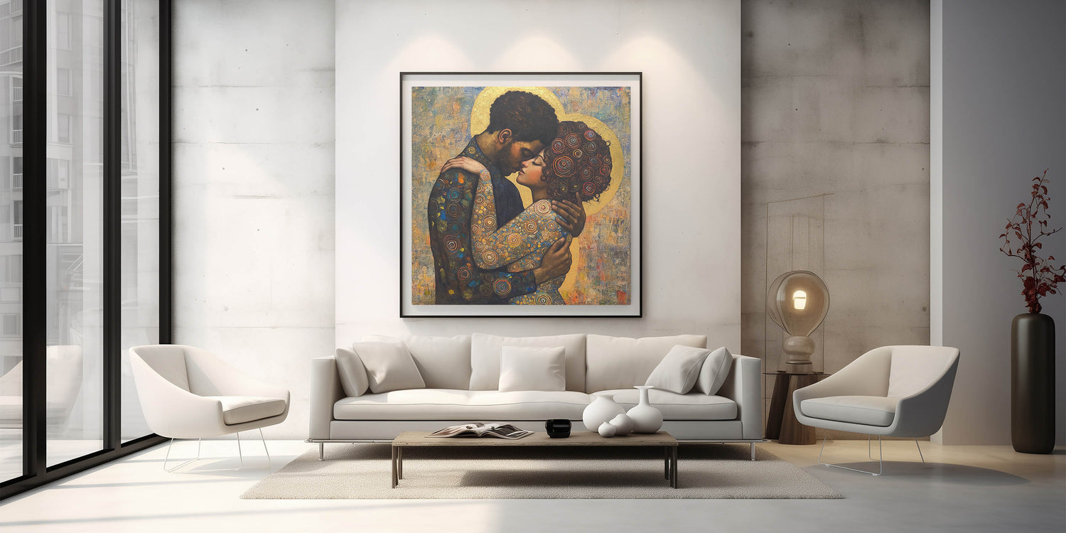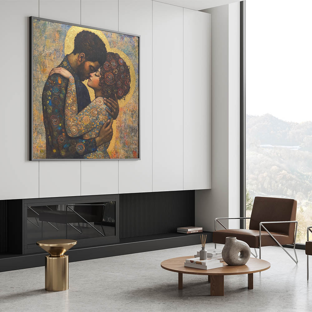 Elegant Figurative Wall Decor – Romantic Golden Embrace Painting