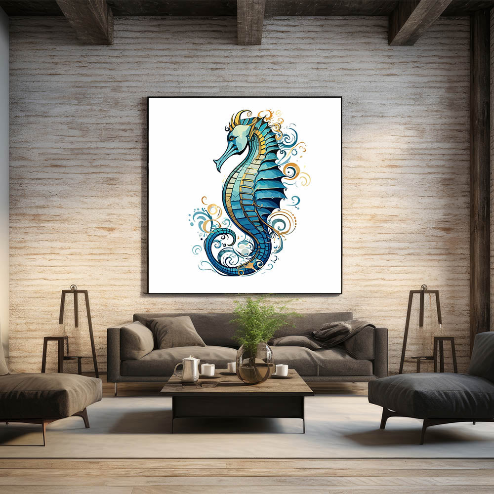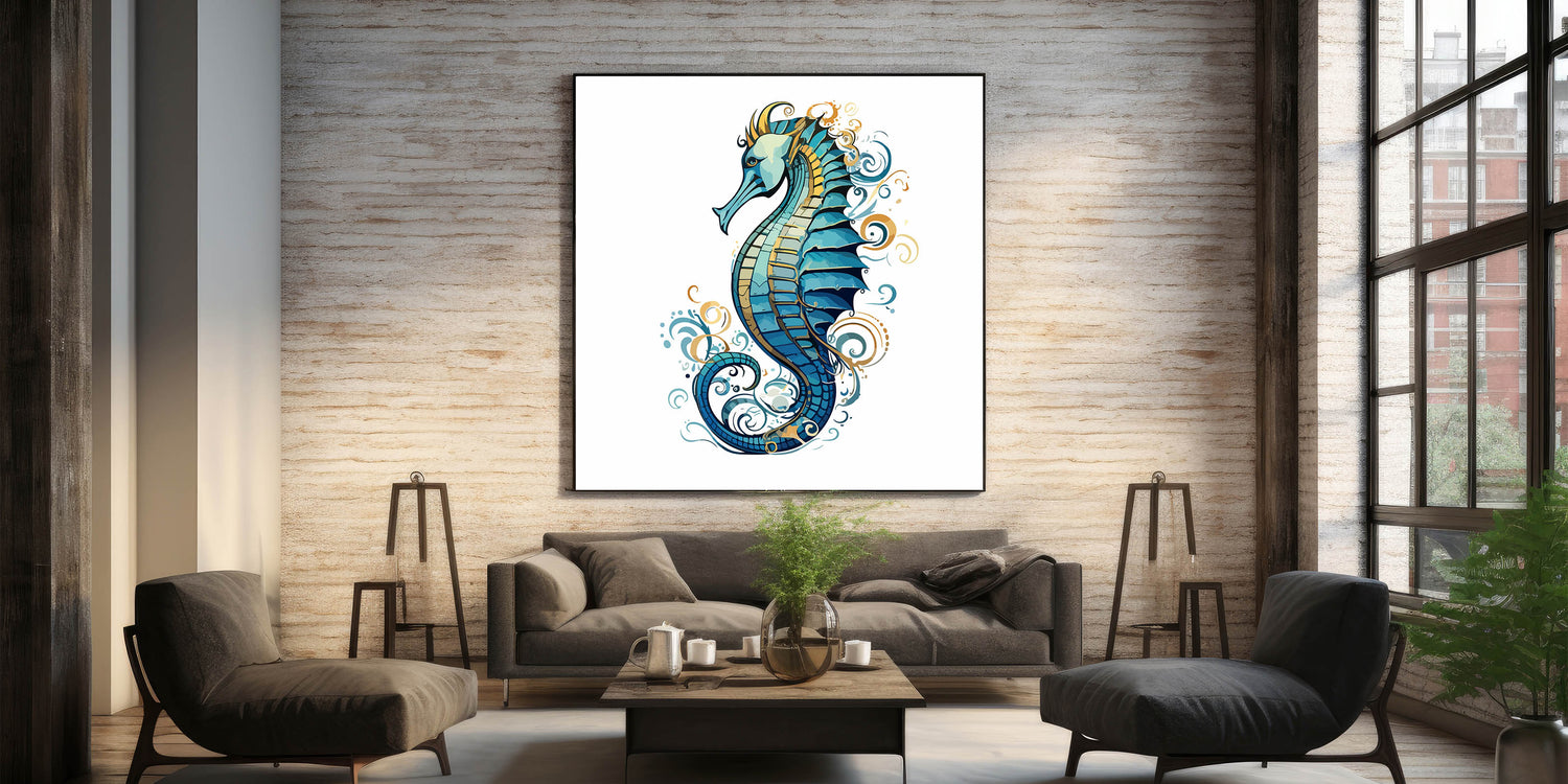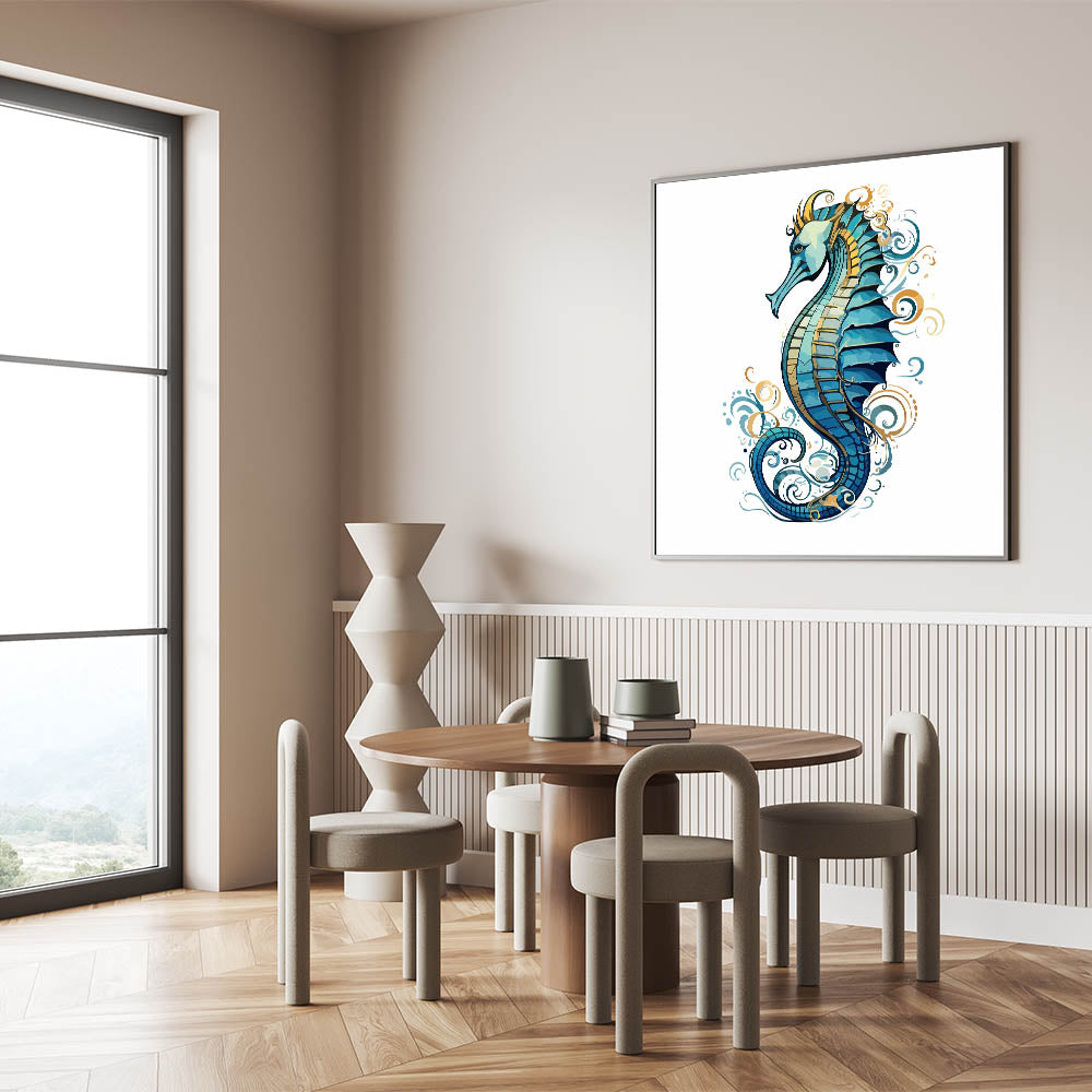 Bring the serene beauty of the ocean into your home with this elegant seahorse wall art. Perfect for marine life enthusiasts, this artwork captures the intricate details and graceful form of the seahorse, a symbol of patience and contentment. The vibrant blues and sandy hues create a stunning contrast, making it an eye-catching piece for any room.