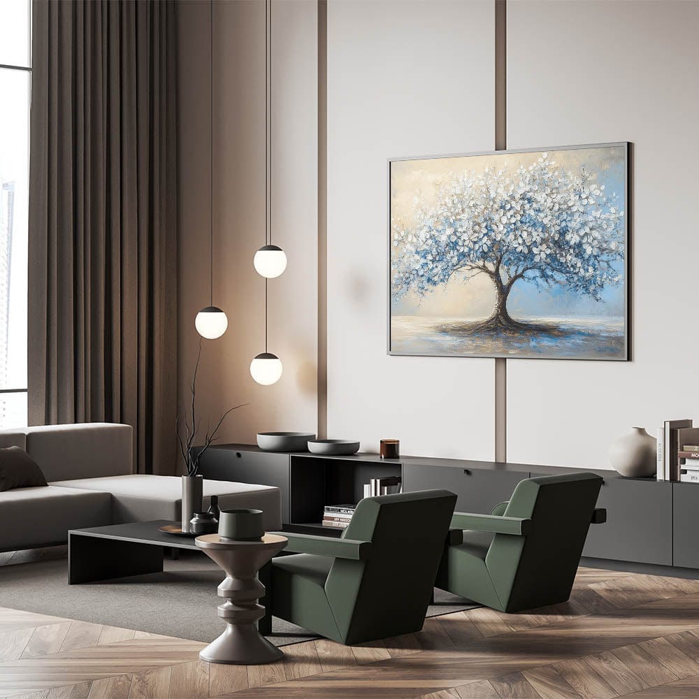 Transform your space with this breathtaking tree art print, a perfect blend of elegance and tranquility. Featuring a beautifully detailed tree with soft blue, white, and beige tones, this landscape art print brings a serene ambiance to any room. Whether you love nature-inspired wall art or seek a timeless forest art print, this piece is ideal for your home or office.