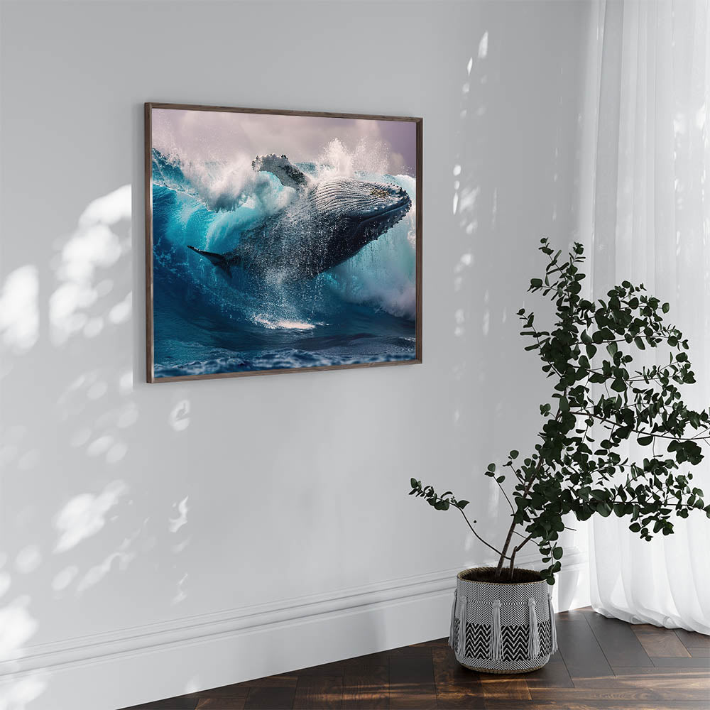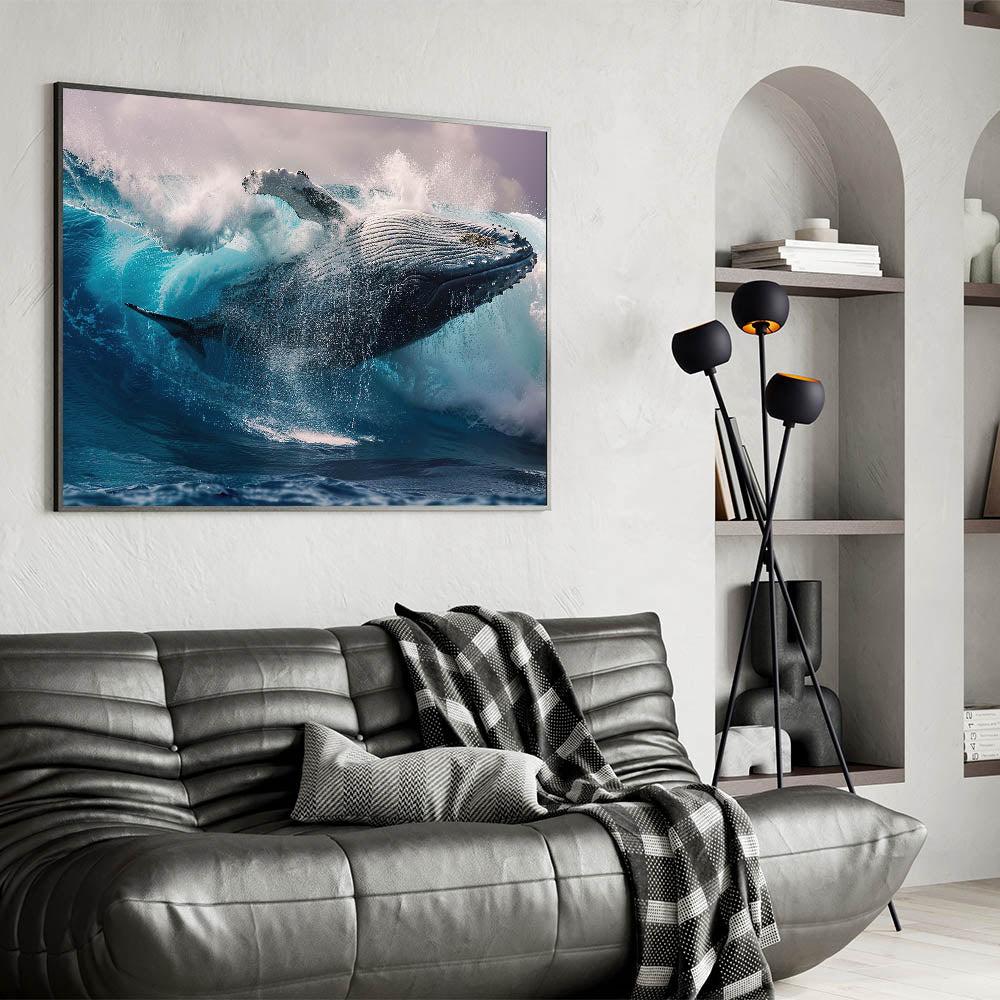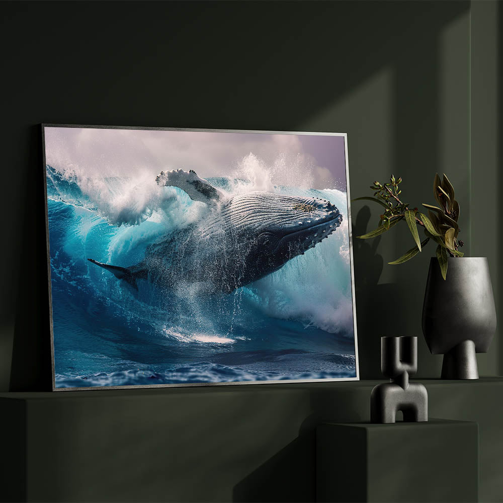 Bring the raw energy and beauty of the ocean into your home with this stunning whale artwork. Perfect for those who love marine life and want to make a bold statement in their decor. Explore more from our collection to find complementary pieces that capture the essence of the sea.