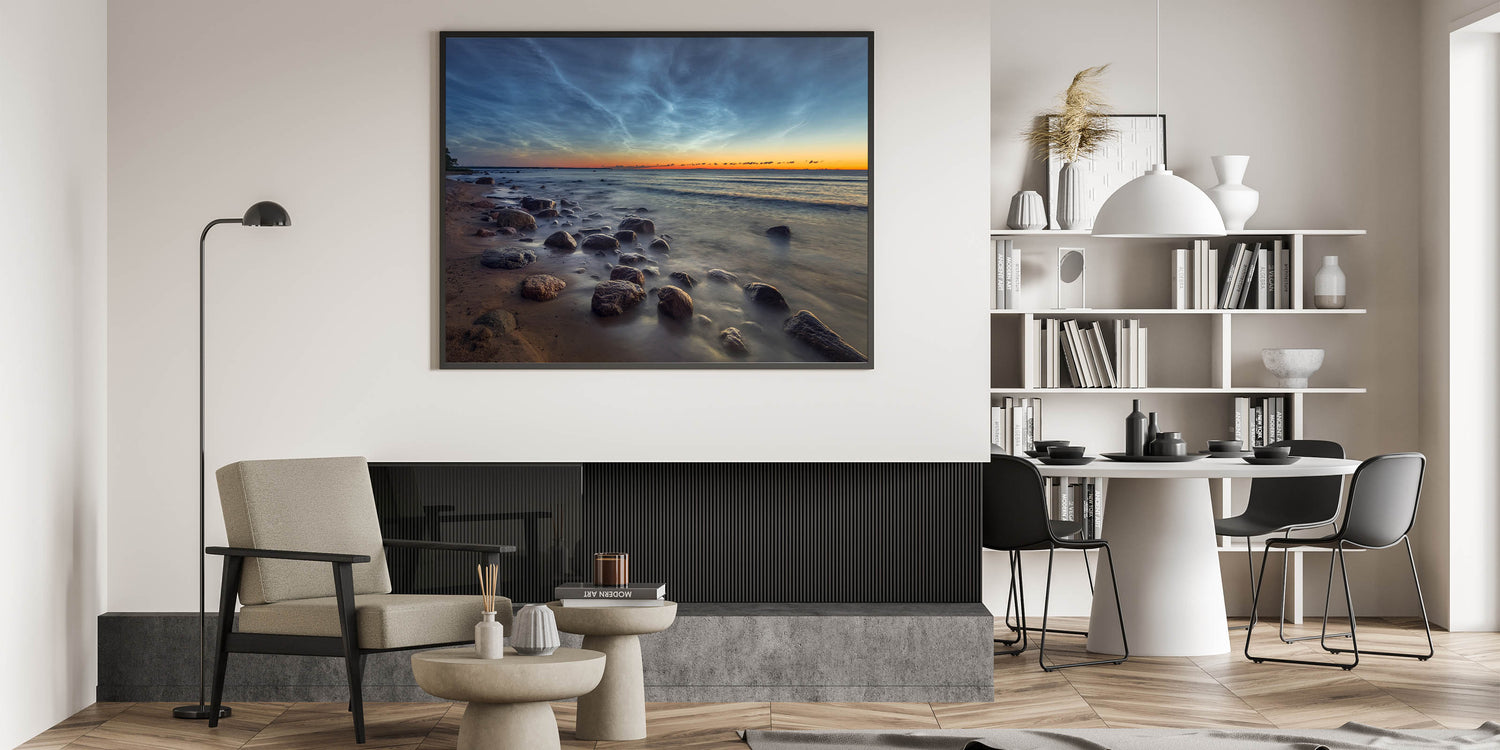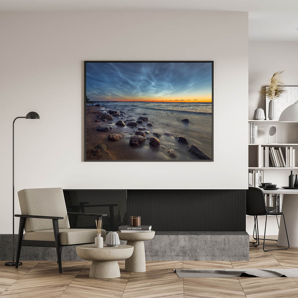 This art piece beautifully showcases the natural splendor of Estonia’s Baltic coastline, with its soothing colors and quiet ambiance. Whether you're looking to create a calming atmosphere or add a touch of nature to your decor, this photograph offers a tranquil escape into the peaceful beauty of the sea.
