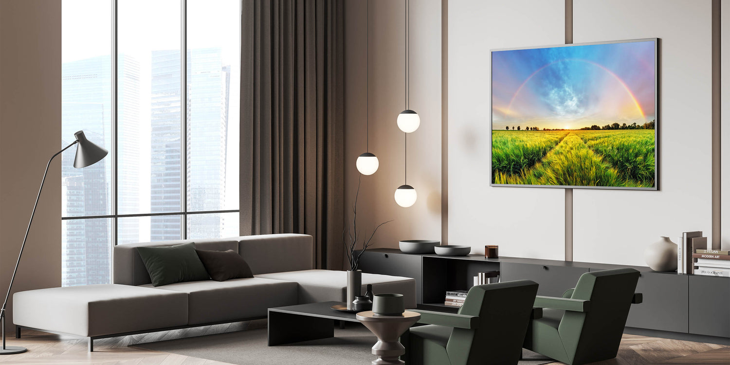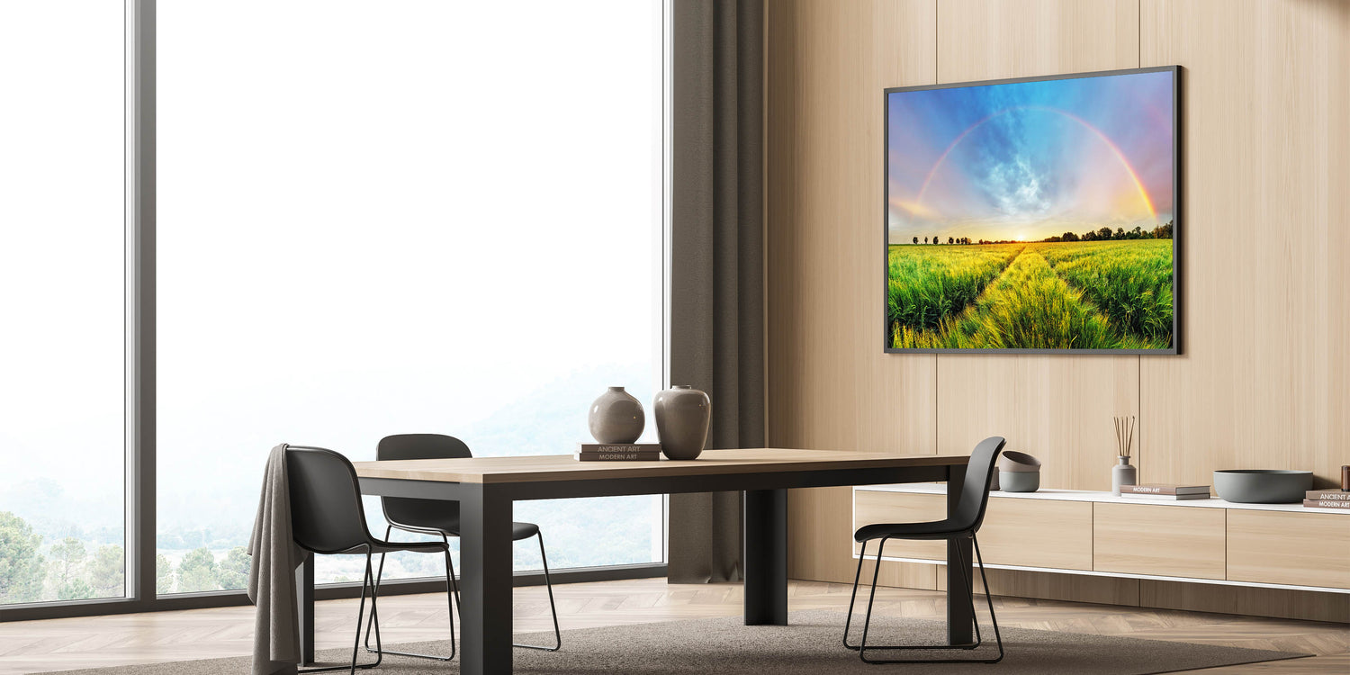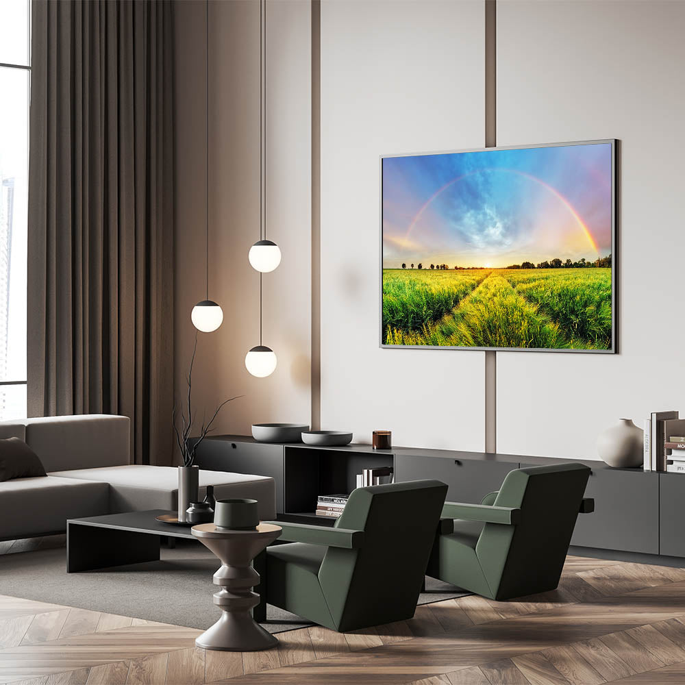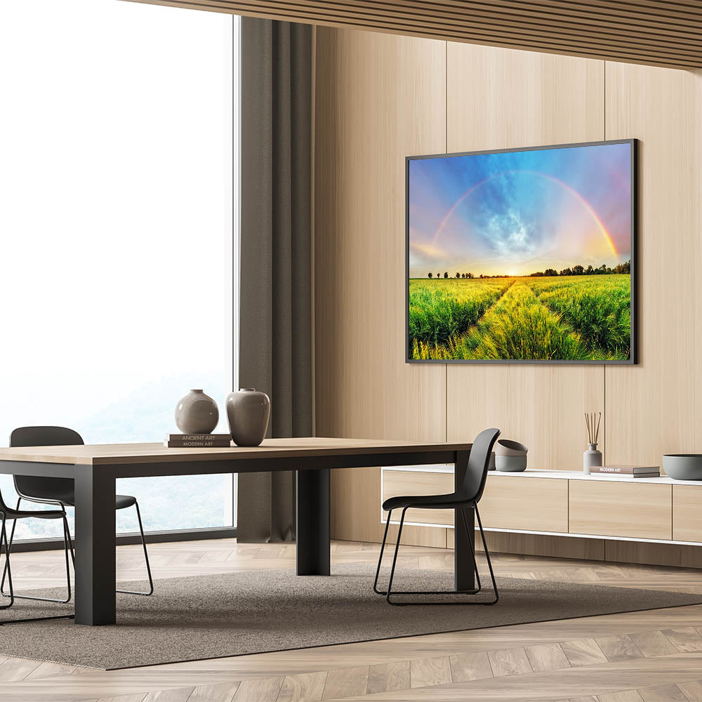 - High-definition printing enhances the vivid colors and intricate details of the rainbow and landscape.