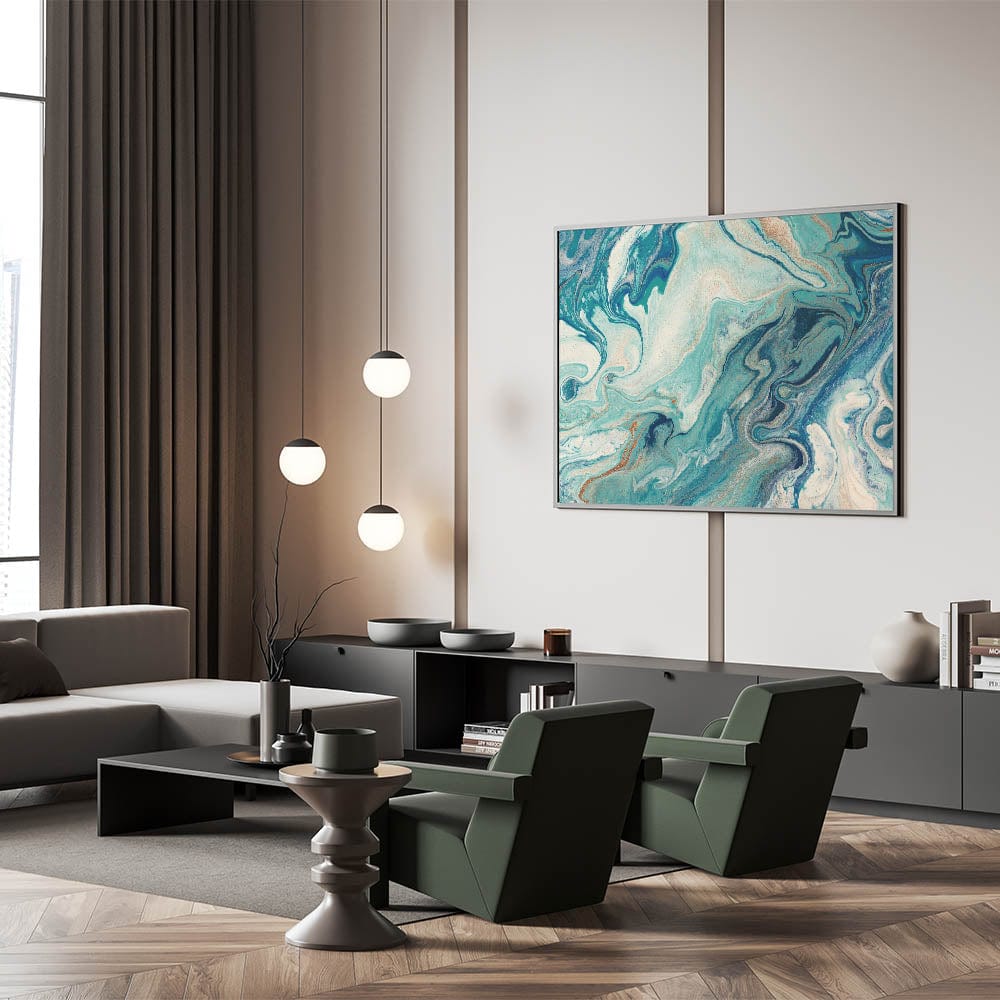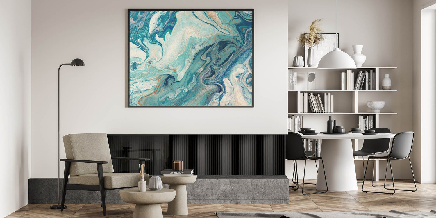 Fluid Abstract Wall Art – Ocean Blue & Turquoise Swirls Canvas