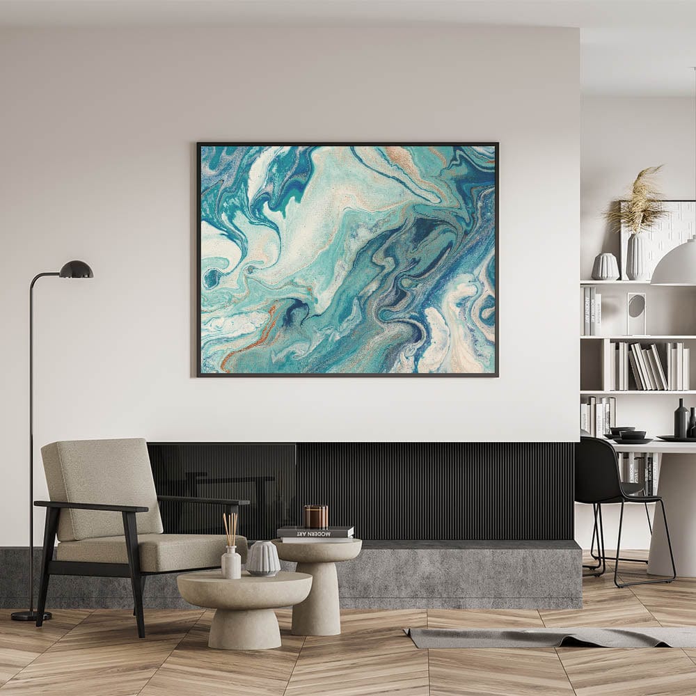 Bring the beauty of flowing water into your space with this fluid abstract wall art, featuring mesmerizing swirls of ocean blue, turquoise, and soft cream. The dynamic movement of color creates a serene and refreshing atmosphere, making it a perfect addition to contemporary and modern interiors.