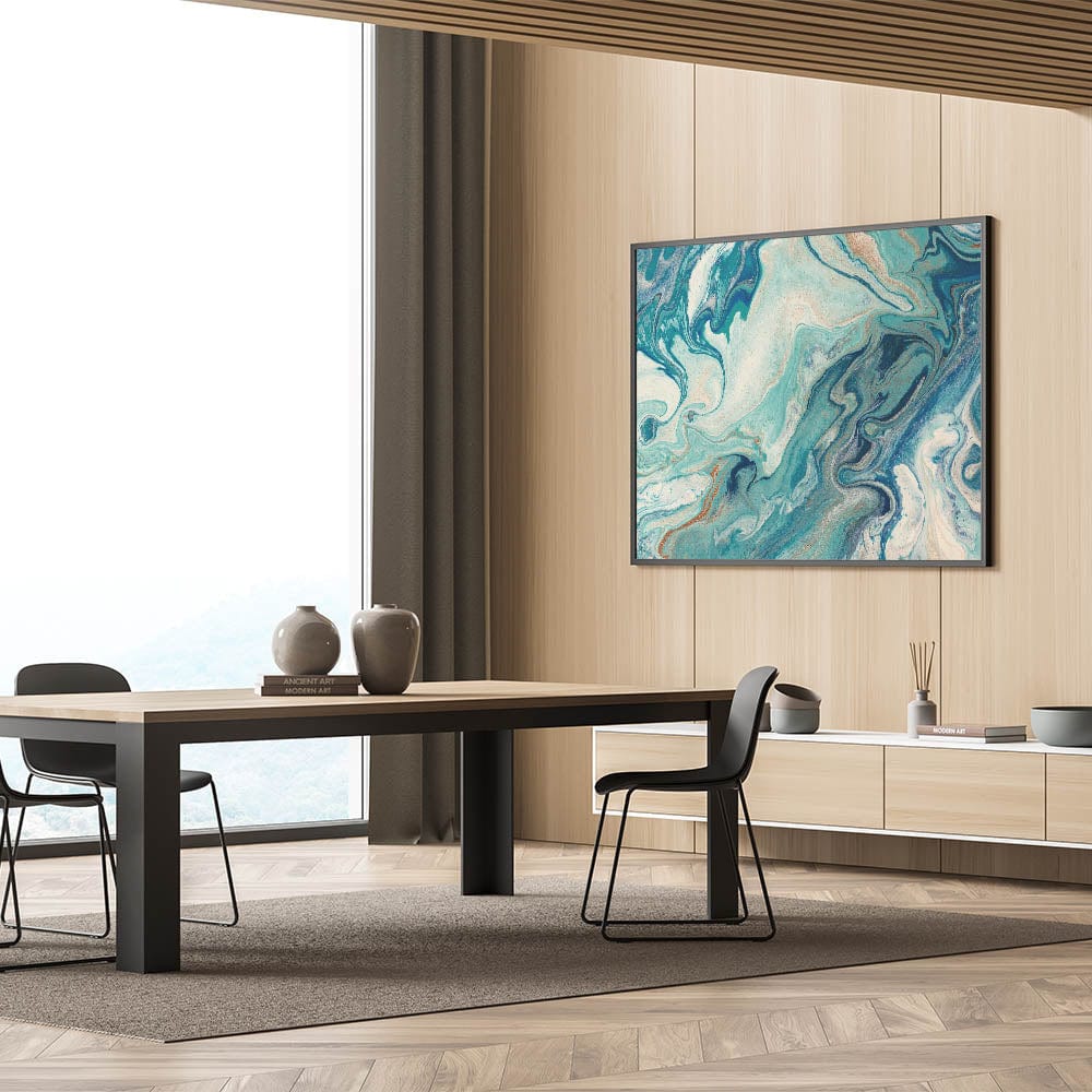 Transform your home with this contemporary fluid acrylic wall decor, blending artistic elegance with soothing ocean-inspired hues. Perfect for those who appreciate modern abstract fluid canvas art.
