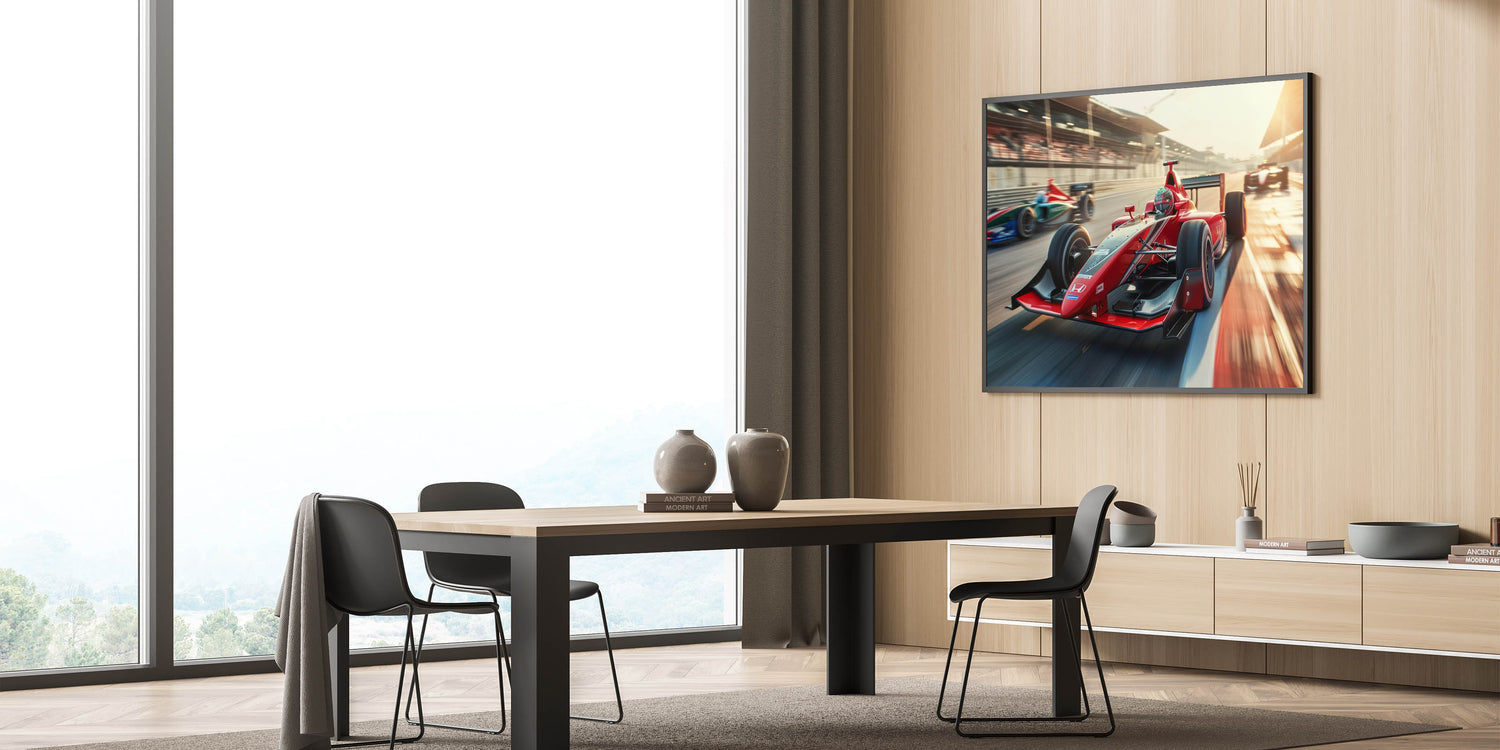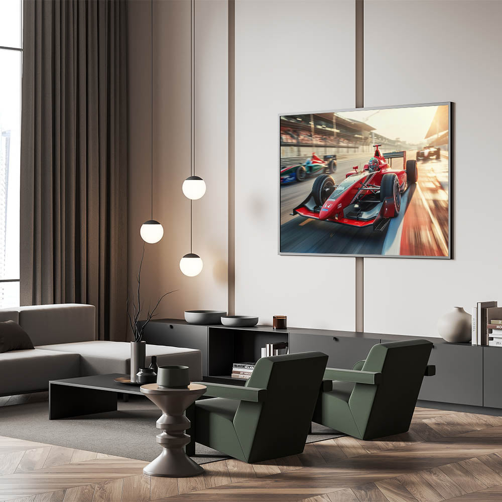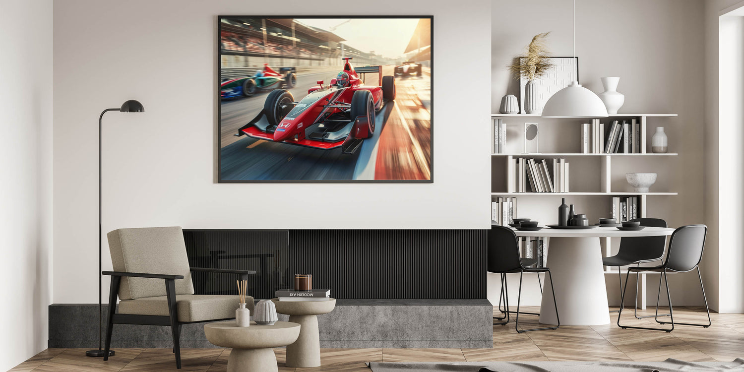 Bring the excitement of Formula 1 racing into your decor with this striking art piece. Its vibrant composition and high-quality finish make it a must-have for any motorsport lover.
