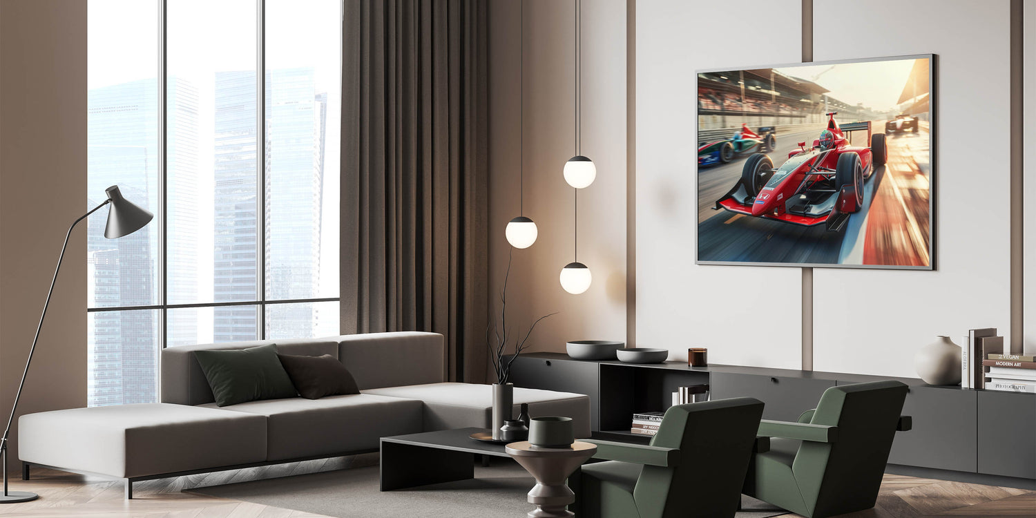 - Modern and sleek design that enhances any space with the energy of motorsport.