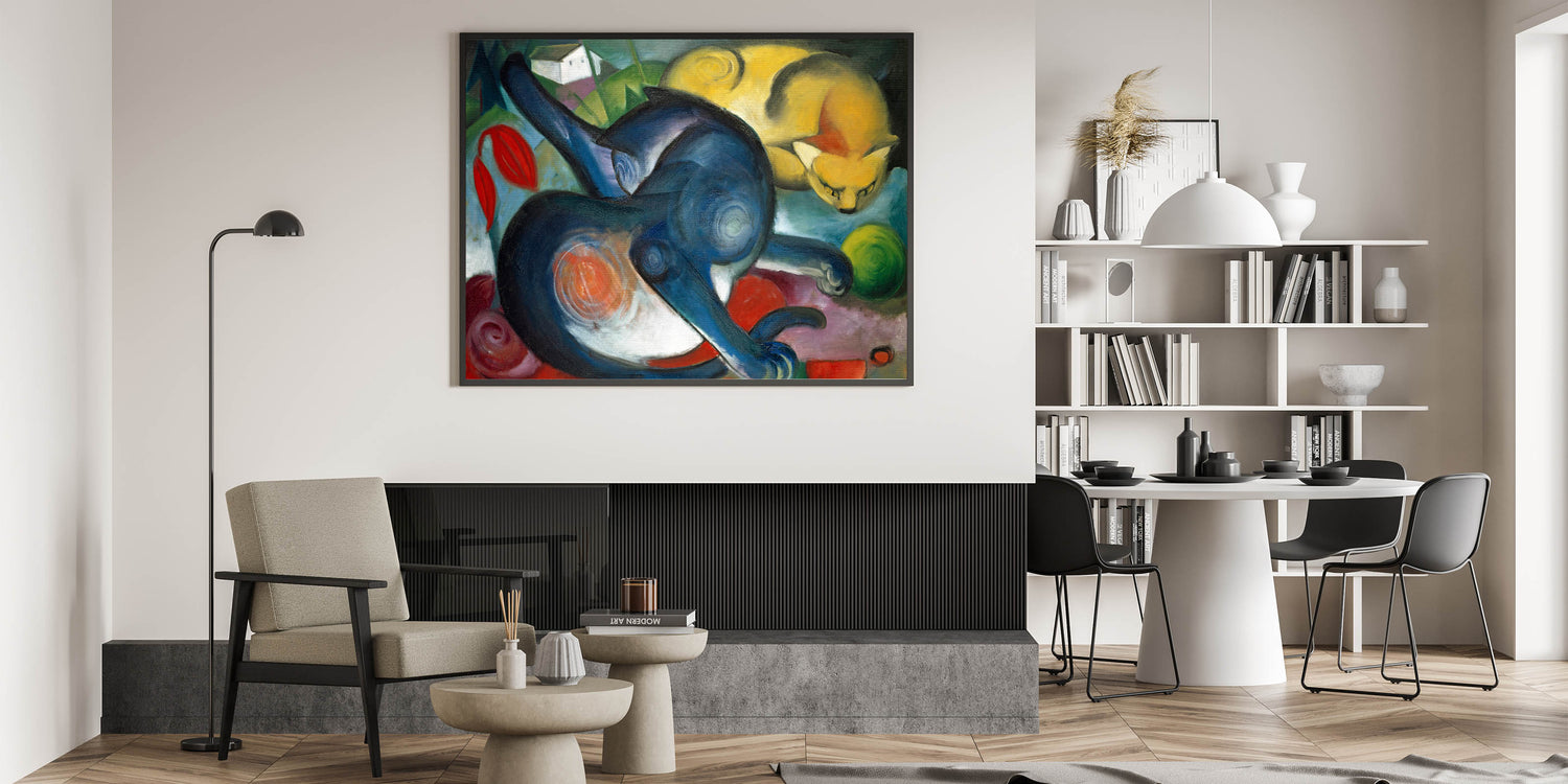 Franz Marc Wall Art - Modernist Expressionist Cats with Blue Rider Style