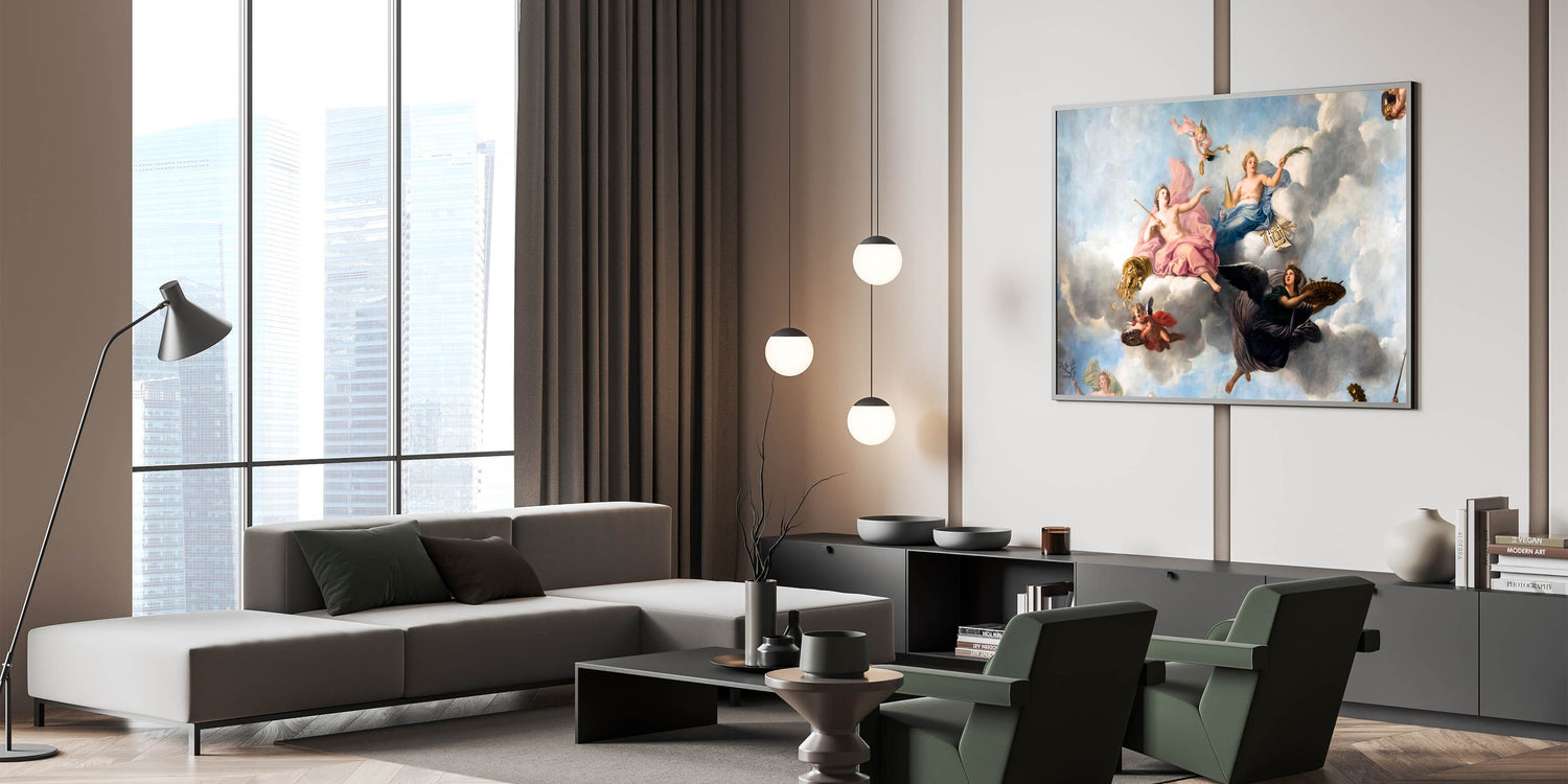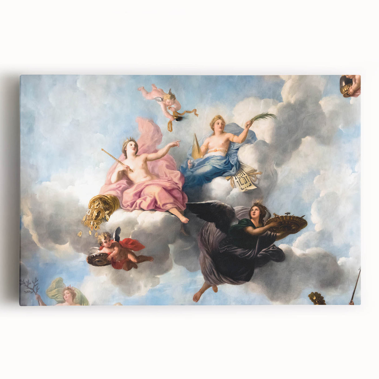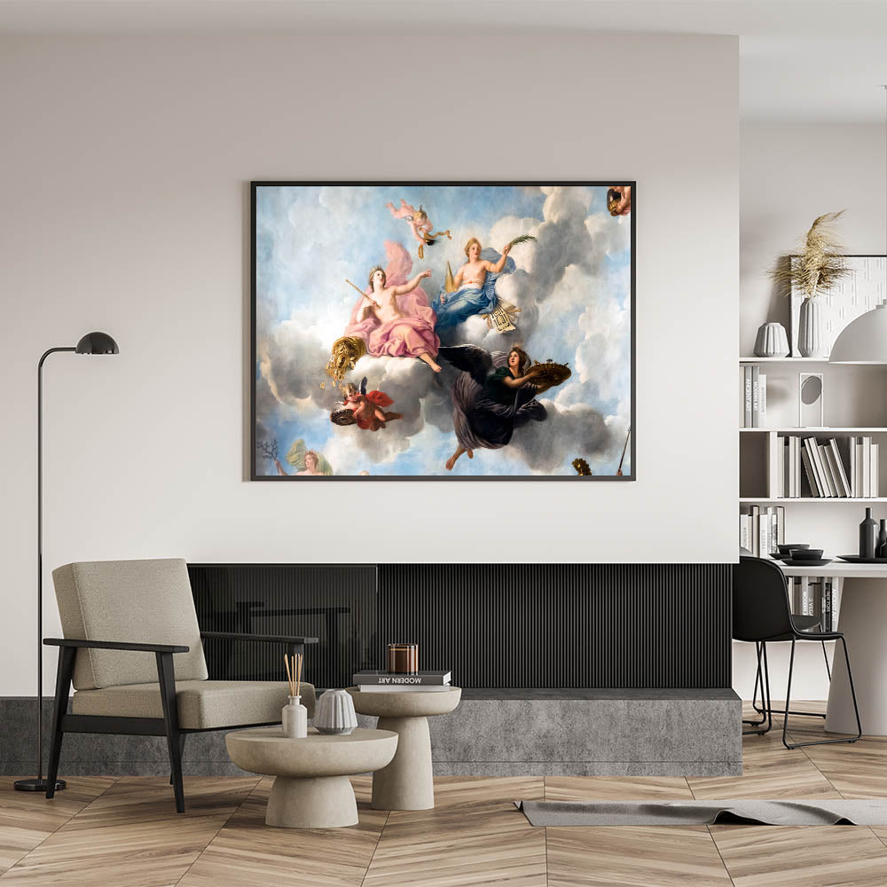 Enhance your space with this stunning French wall decor showcasing an exquisite Parisian Baroque ceiling painting. Featuring cherubs and soft pastel hues, this artwork captures the elegance and grandeur of historical French artistry. This piece is perfect for creating a romantic atmosphere in any room, and it brings a touch of Parisian charm into your home. Available as high-quality Paris canvas prints, framed canvas, and acrylic glass, this beautiful Paris artwork is a timeless addition to any decor.