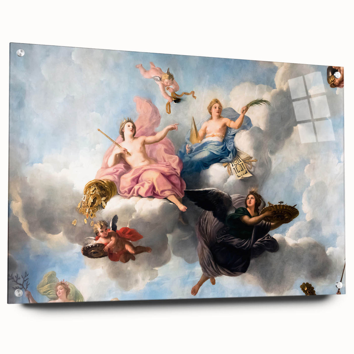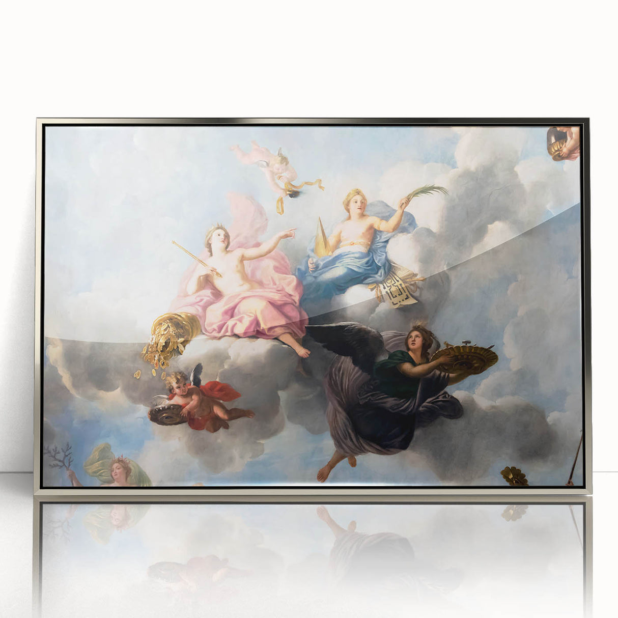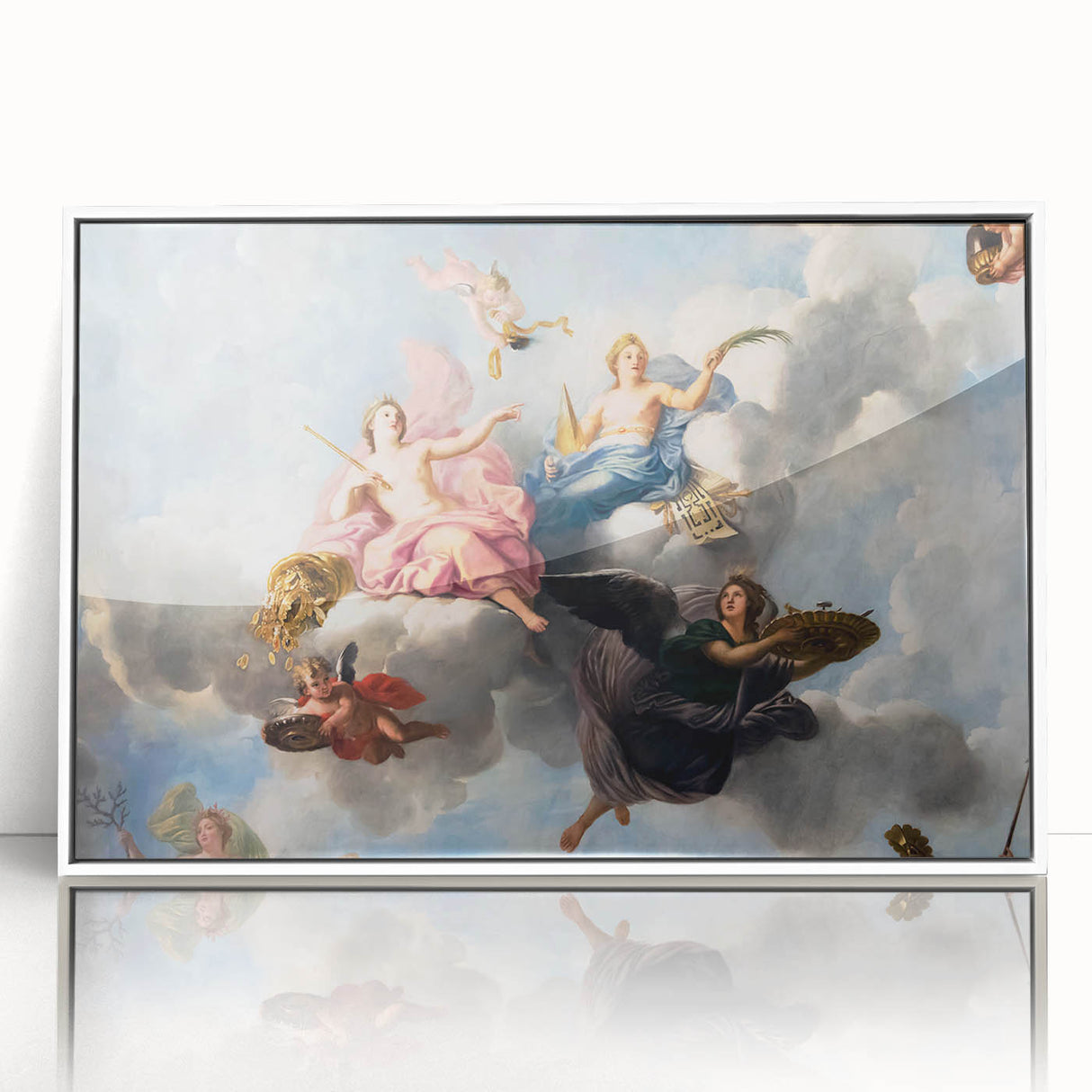 Enhance your space with this stunning French wall decor showcasing an exquisite Parisian Baroque ceiling painting. Featuring cherubs and soft pastel hues, this artwork captures the elegance and grandeur of historical French artistry. This piece is perfect for creating a romantic atmosphere in any room, and it brings a touch of Parisian charm into your home. Available as high-quality Paris canvas prints, framed canvas, and acrylic glass, this beautiful Paris artwork is a timeless addition to any decor.