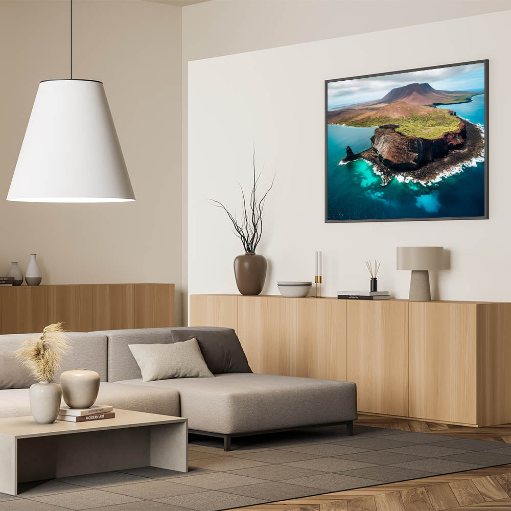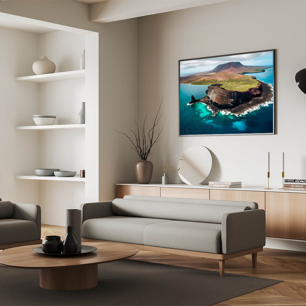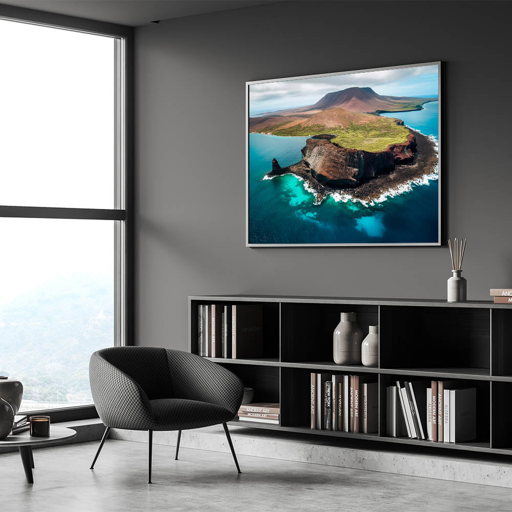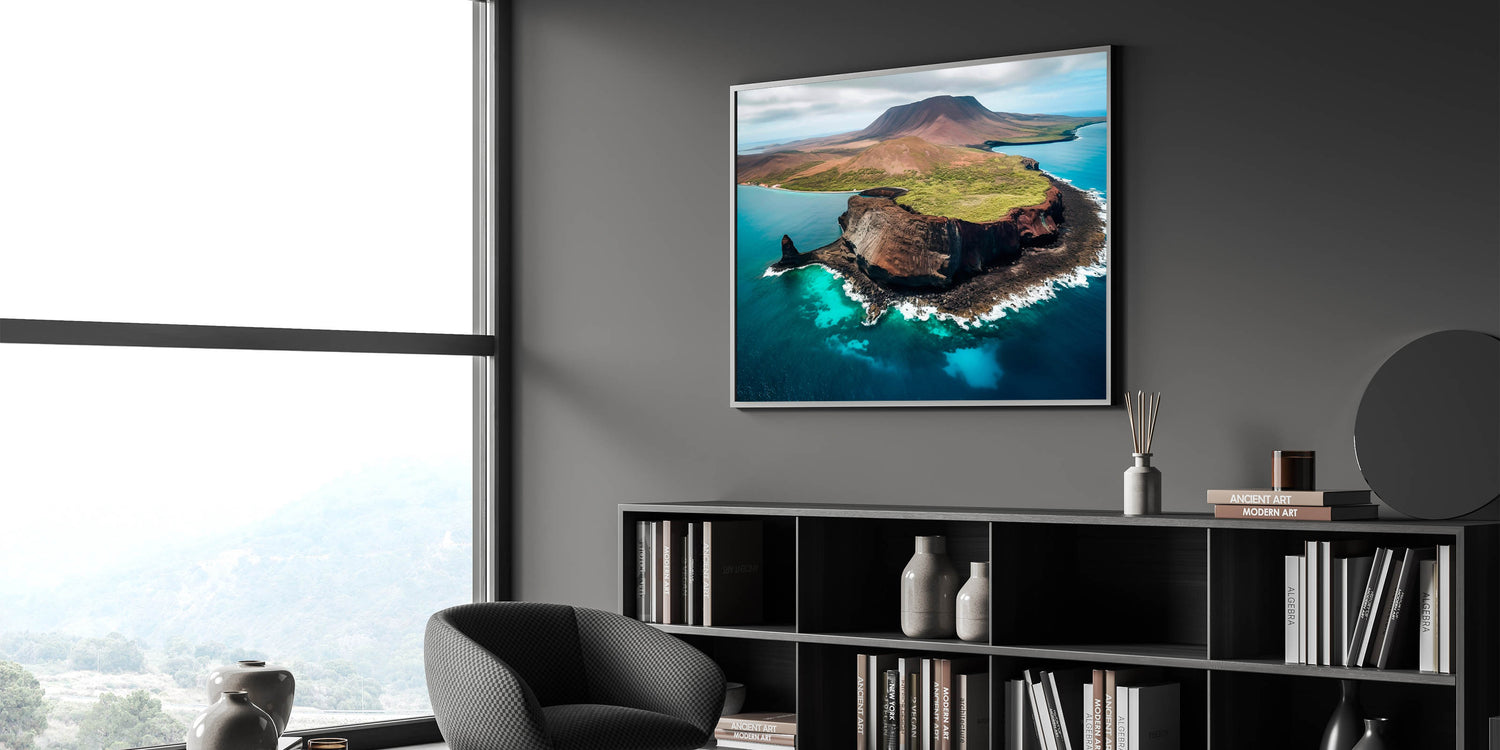 Immerse yourself in the breathtaking beauty of the Galapagos Islands with this stunning aerial view wall art. Capturing the vibrant colors of the island’s coastline, this art piece showcases the natural wonders of Ecuador's untouched landscapes. The dramatic cliffs, deep blue ocean, and lush greenery make this print perfect for anyone seeking to bring a piece of the Galapagos into their home. Whether you’re a fan of coastal scenery or unique landscapes, this Galapagos scenic print will elevate any room with its striking beauty.