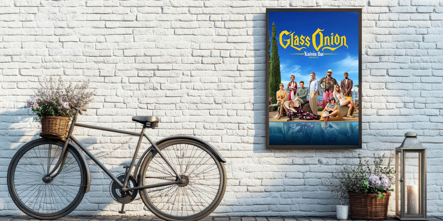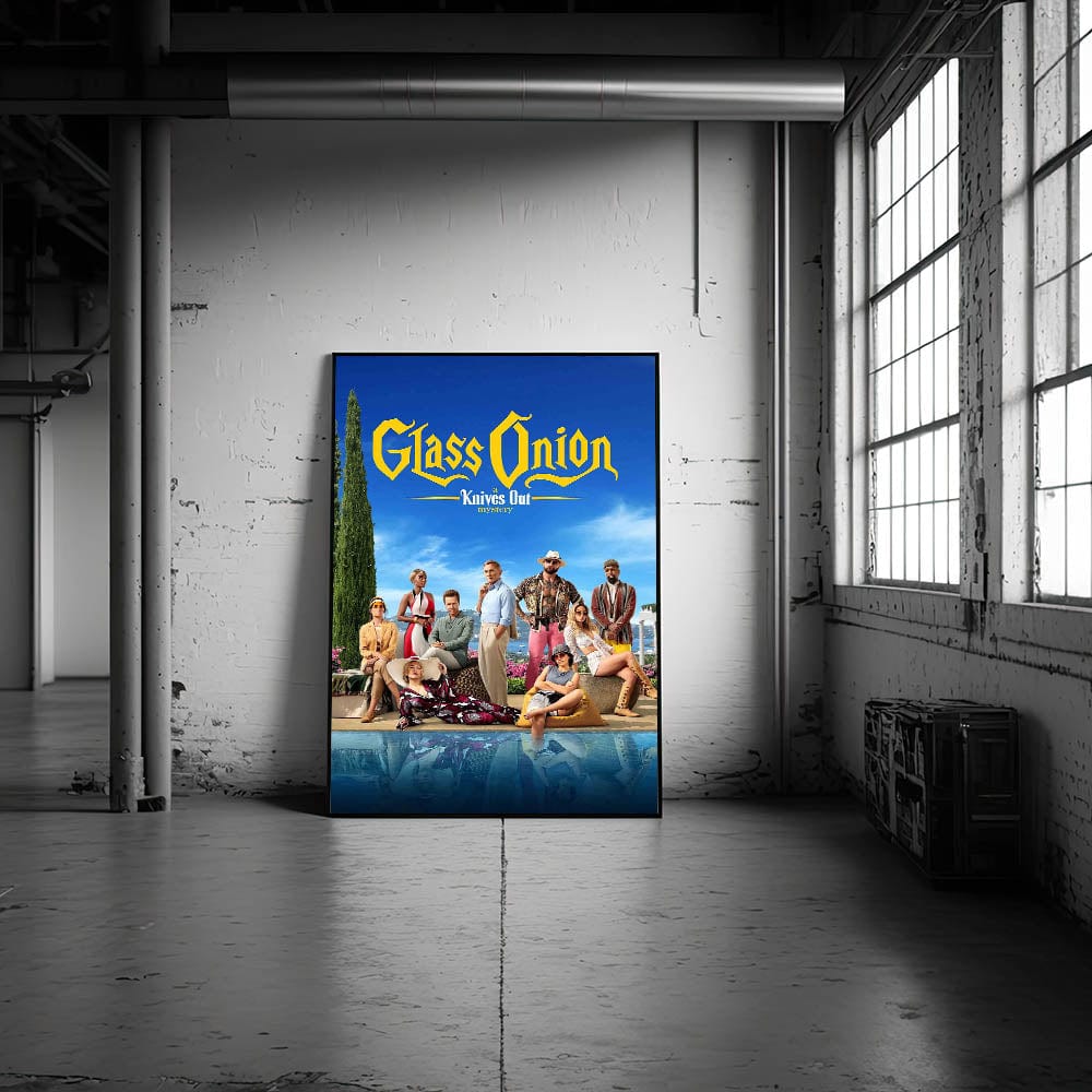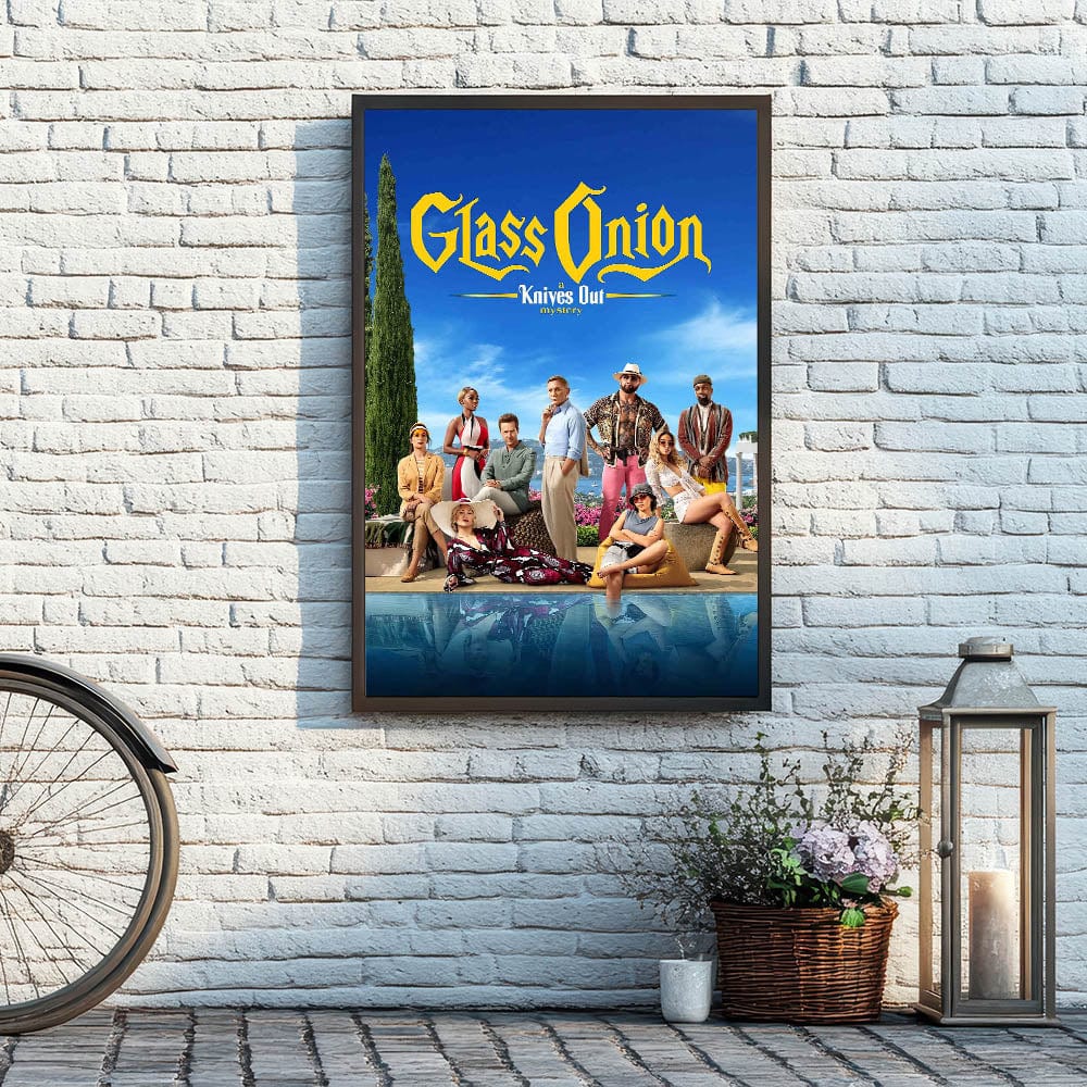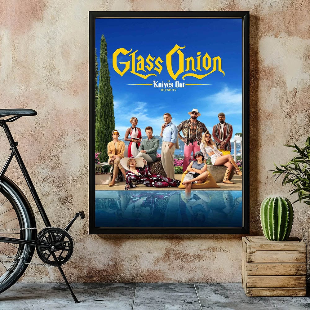 Experience the thrilling mystery of Glass Onion: A Knives Out Mystery with this 2020s vintage movie poster. This retro film art print showcases the stylish ensemble cast against a stunning Mediterranean backdrop, making it an essential piece for collectible movie prints lovers. Whether displayed in a home theater decor setup or as a focal point in your living space, this limited edition cinema art is a must-have for film enthusiasts.