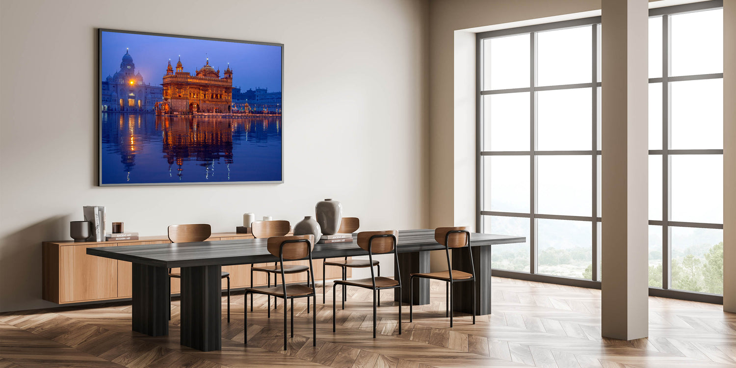 This Golden Temple wall art will captivate anyone with its stunning balance of light and reflection, offering a peaceful yet majestic addition to any home décor. It’s a must-have for anyone inspired by Indian culture and architectural beauty.