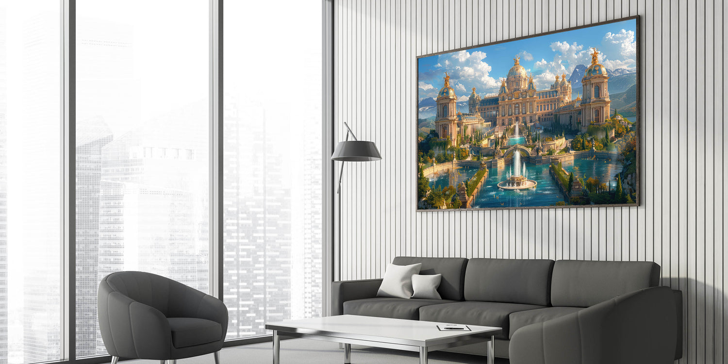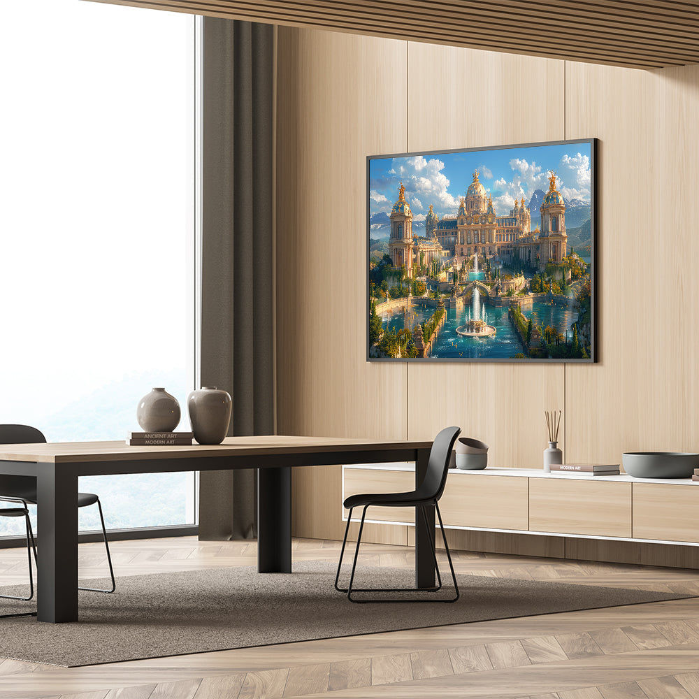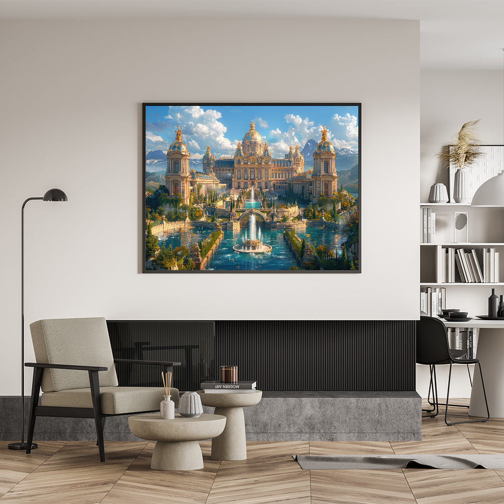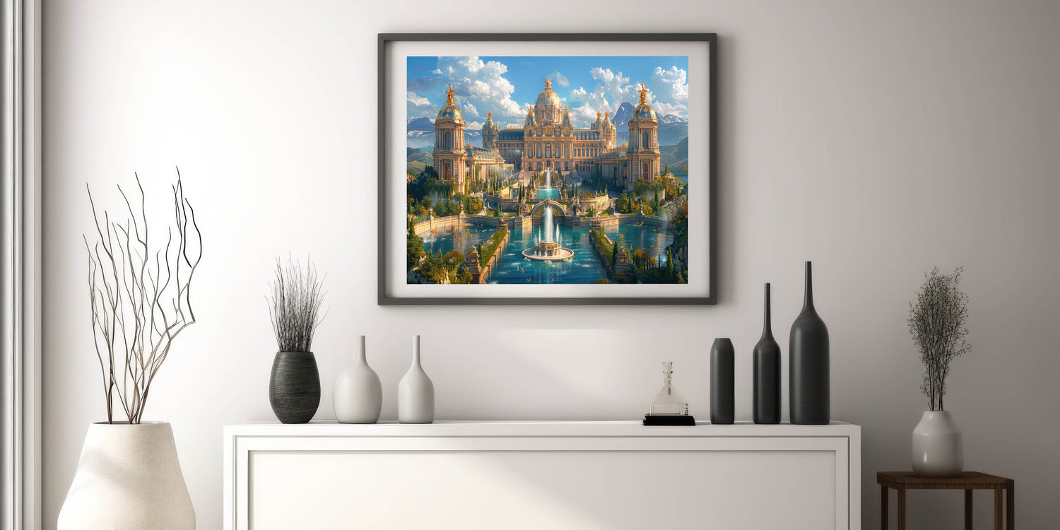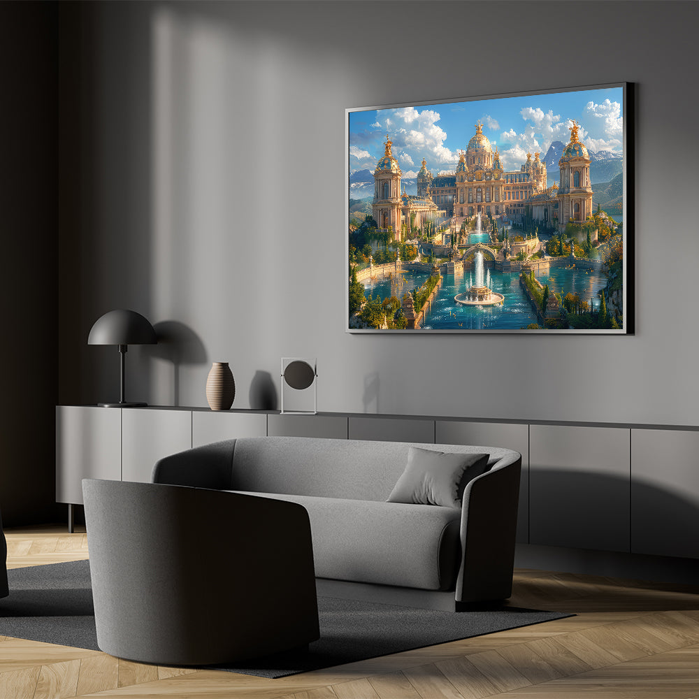 Transform your home or office with this majestic palace garden art print, perfect for those who appreciate luxury, elegance, and timeless beauty.