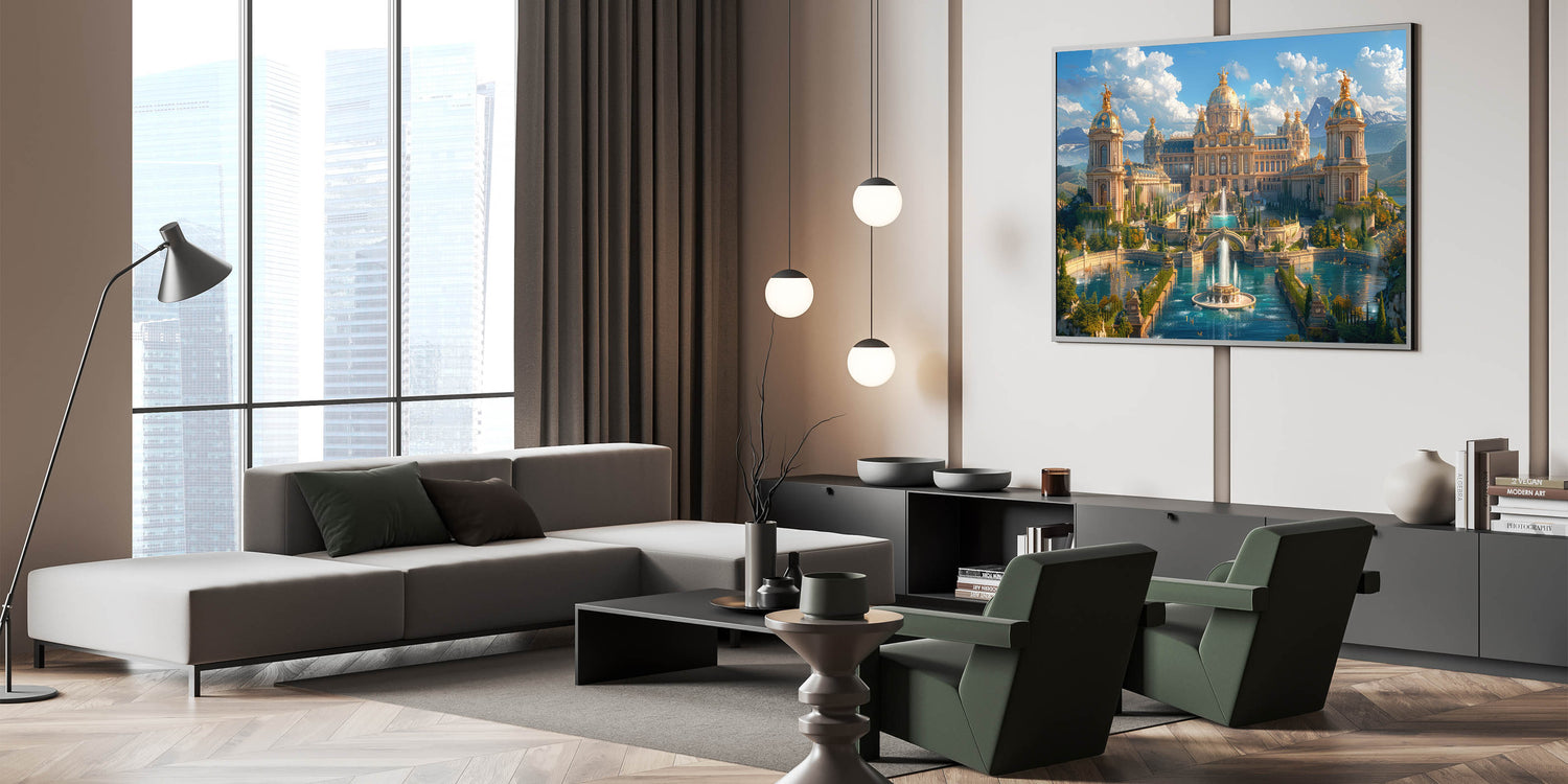 - Material Options: Available as stretched canvas, framed canvas, acrylic glass, framed acrylic glass, framed print, rolled canvas, and rolled print.