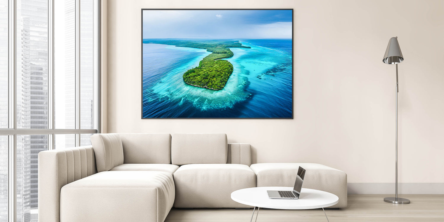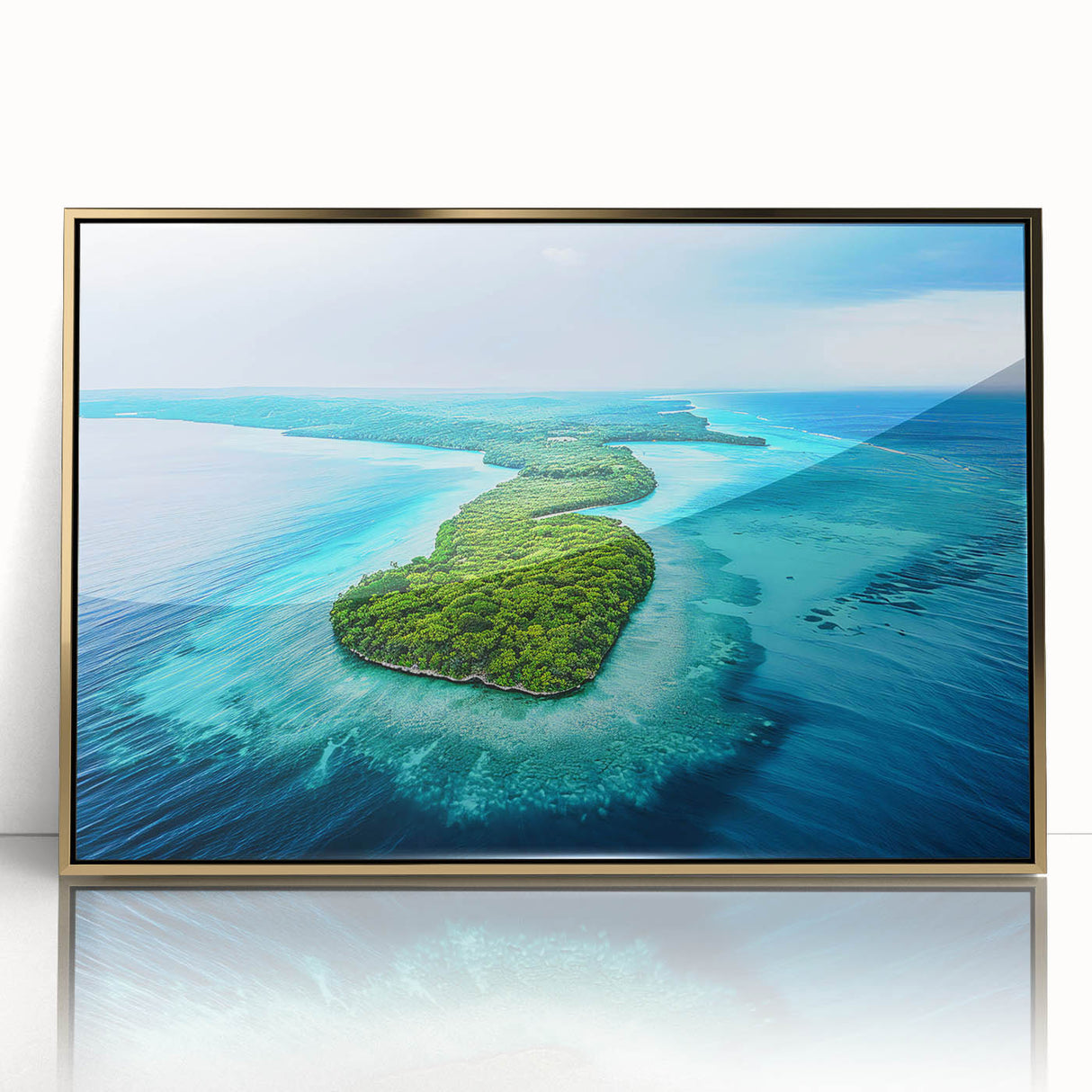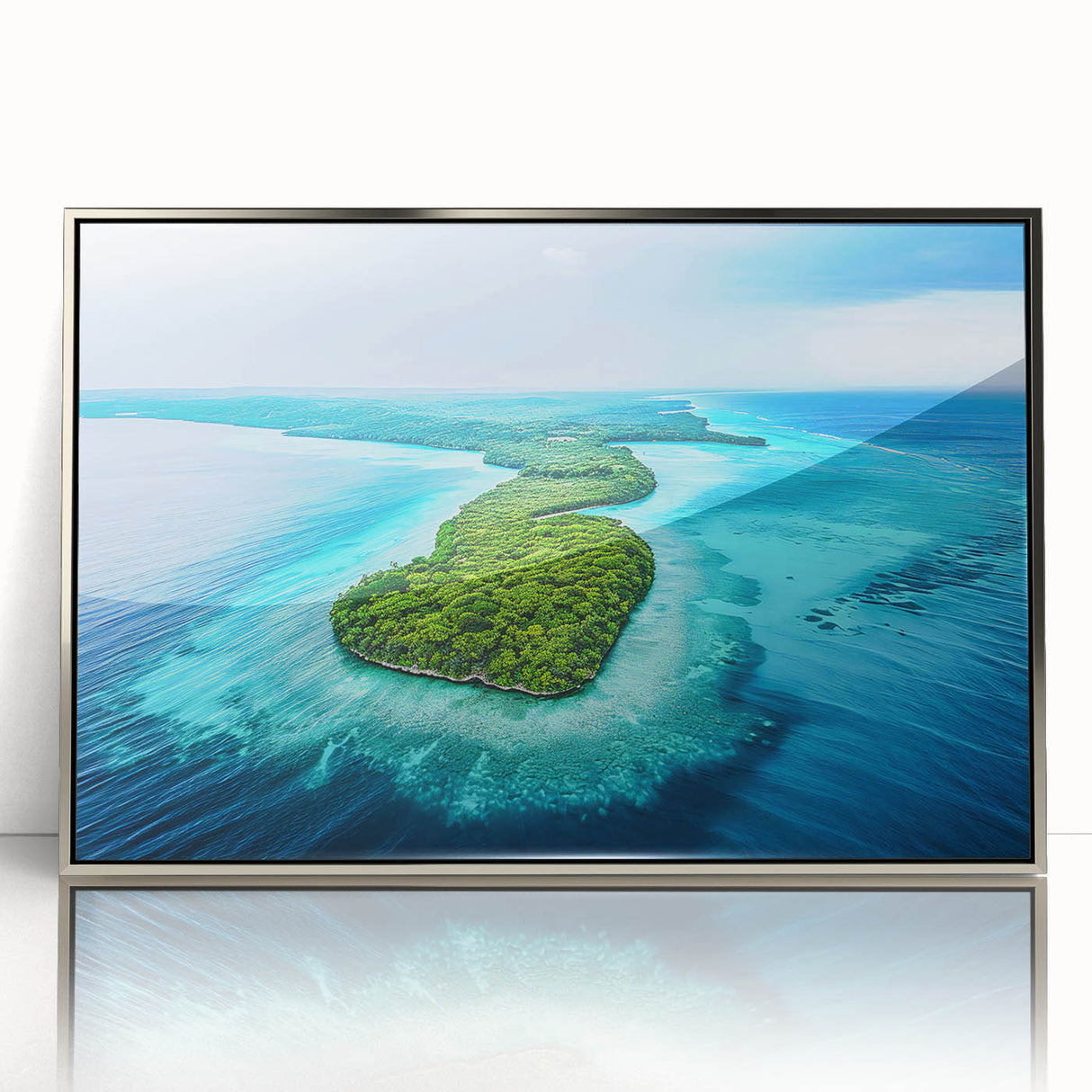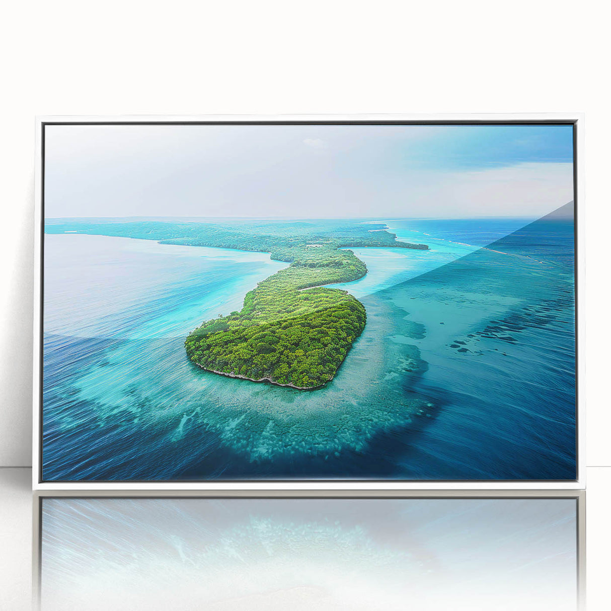 Capture the unique charm of Micronesia with our "Heart-Shaped Island Art Print" from the Pacific Ocean Art collection. This exceptional print offers a breathtaking aerial view of a naturally heart-shaped island, surrounded by the stunning turquoise waters of the Pacific.