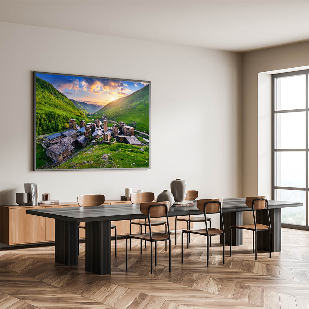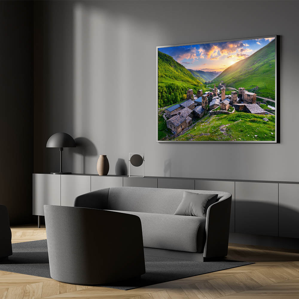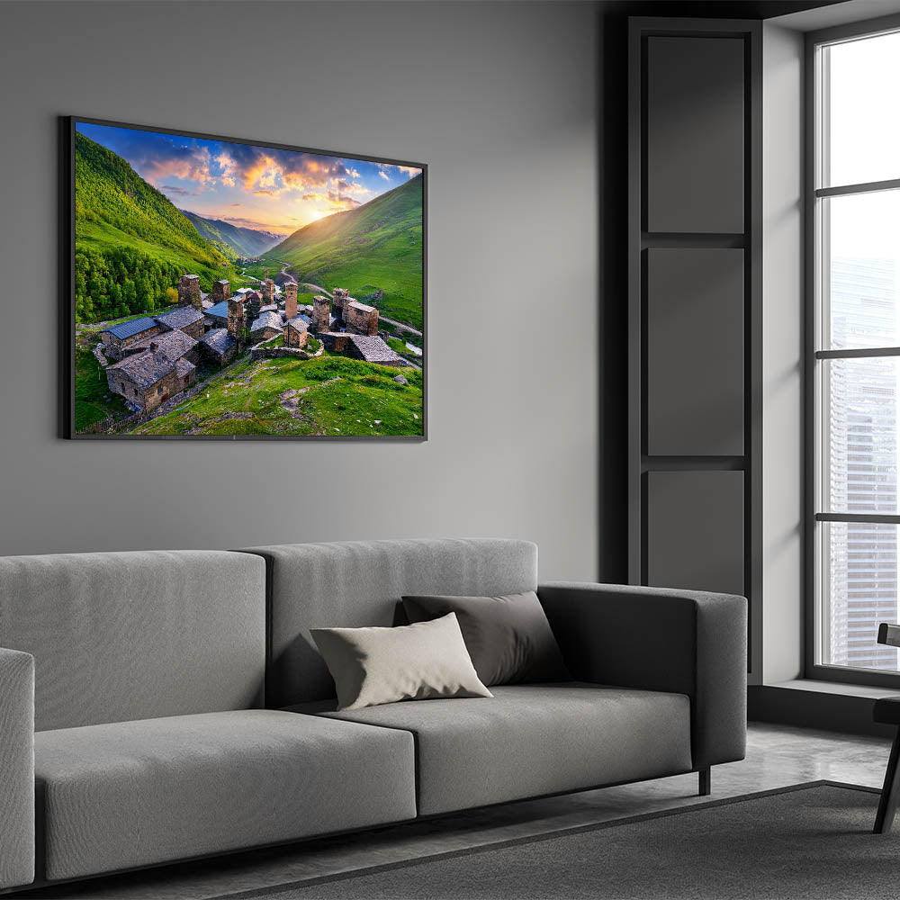This Idyllic village canvas print invites you to explore the beauty and history of a remote mountain village, offering a serene and timeless piece that will enhance any space.
