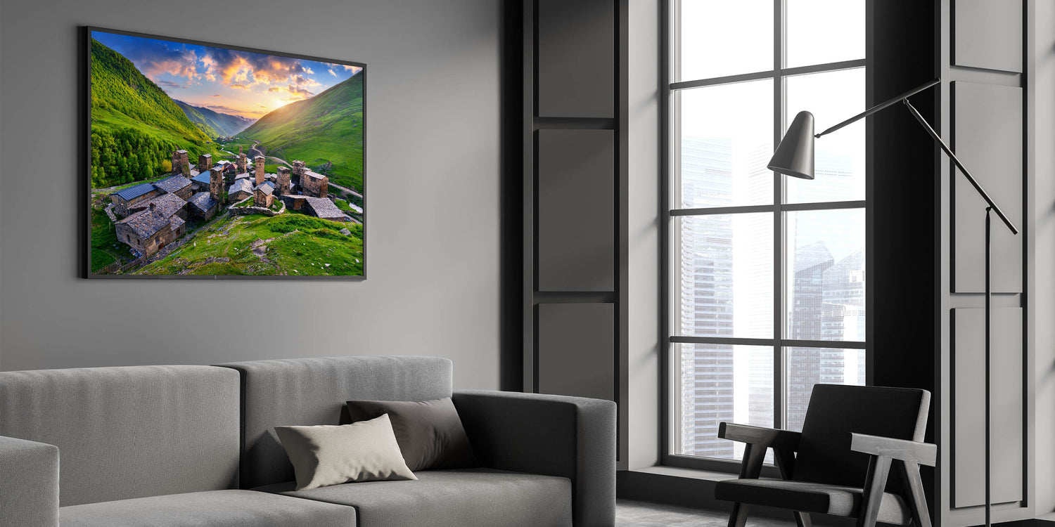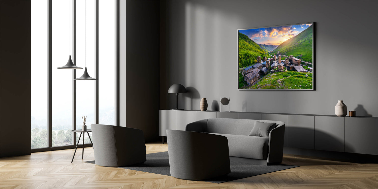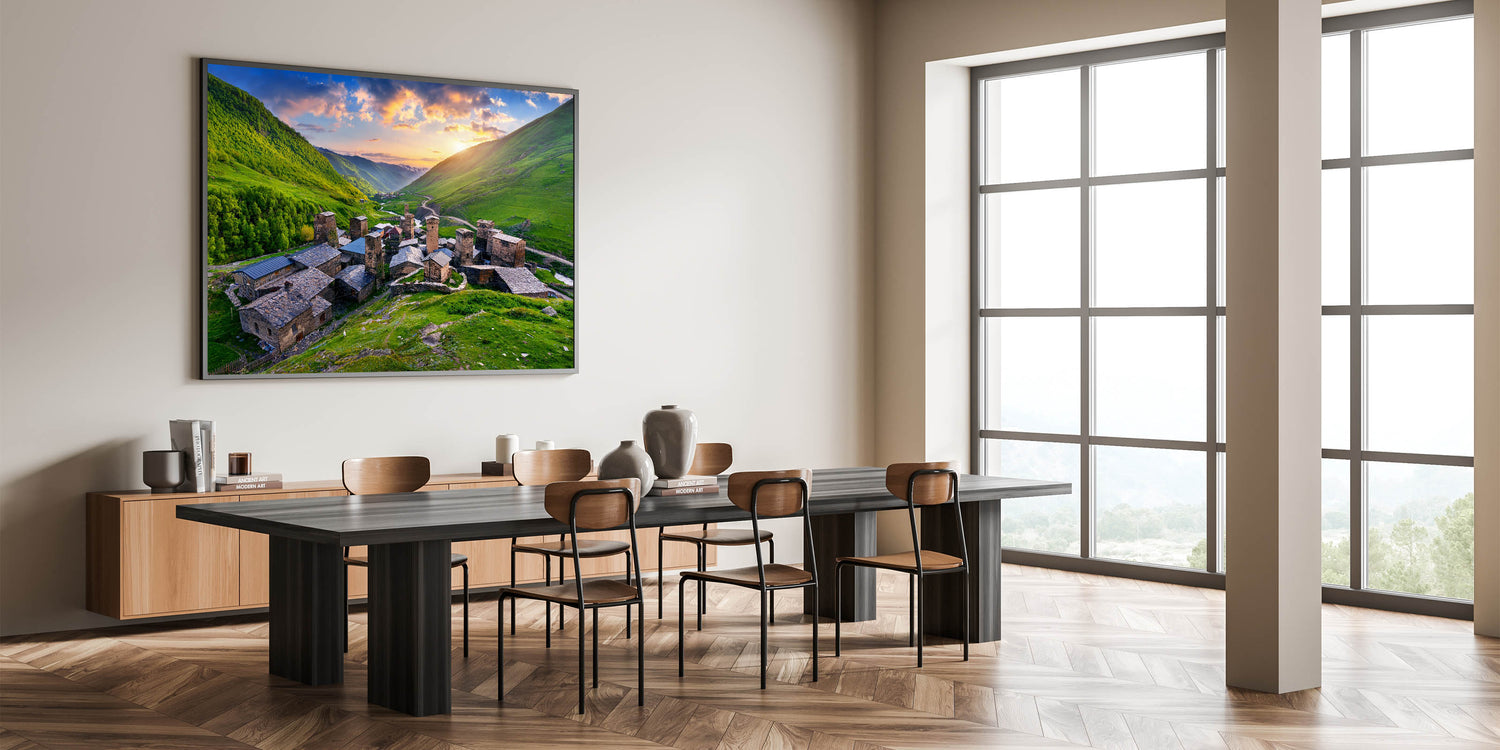 This Idyllic village canvas print invites you to explore the beauty and history of a remote mountain village, offering a serene and timeless piece that will enhance any space.