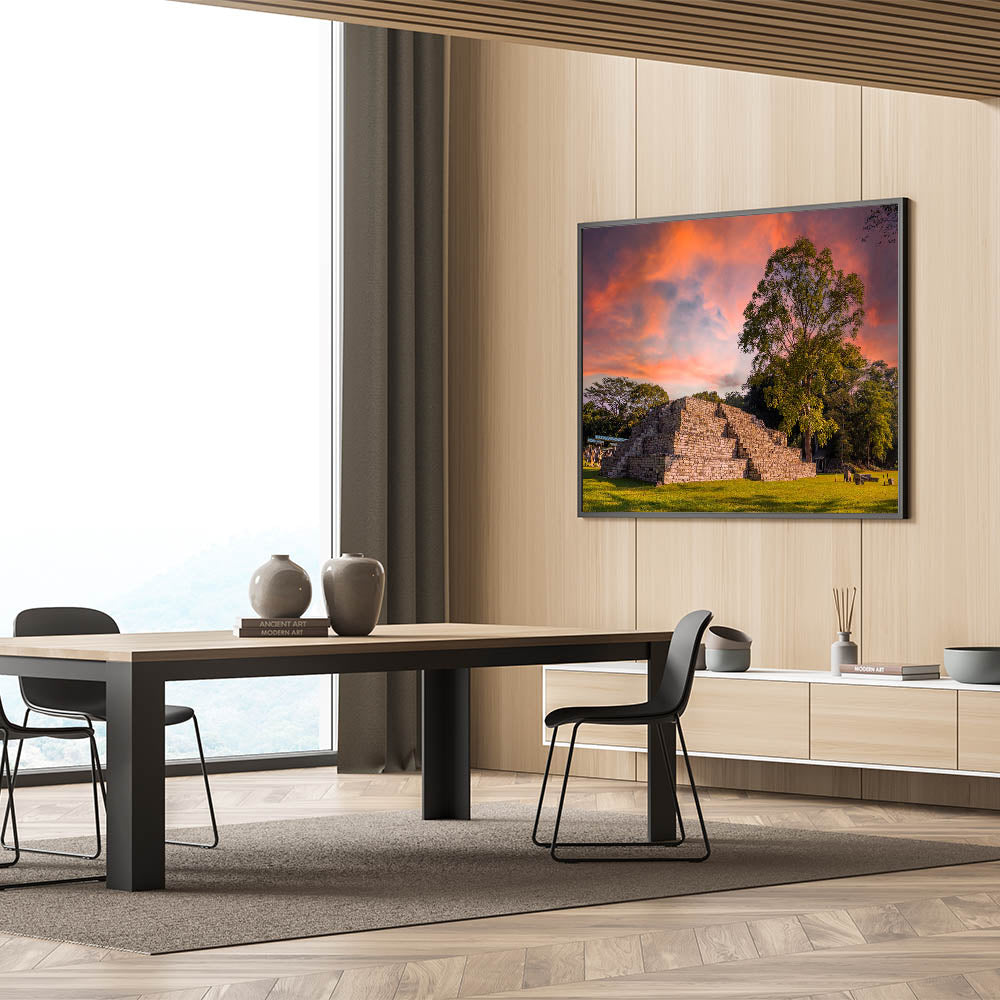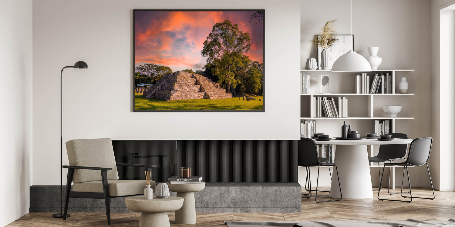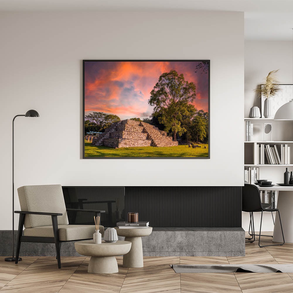 Embrace the breathtaking beauty of Honduras with our "Honduran Sunset Silhouettes" Wall Art. This piece captures the tranquil essence of a sunset over the majestic mountains of Honduras, offering a soothing and picturesque view that enhances any room.