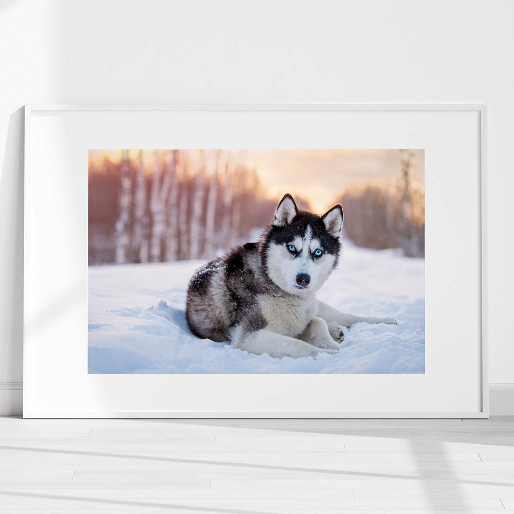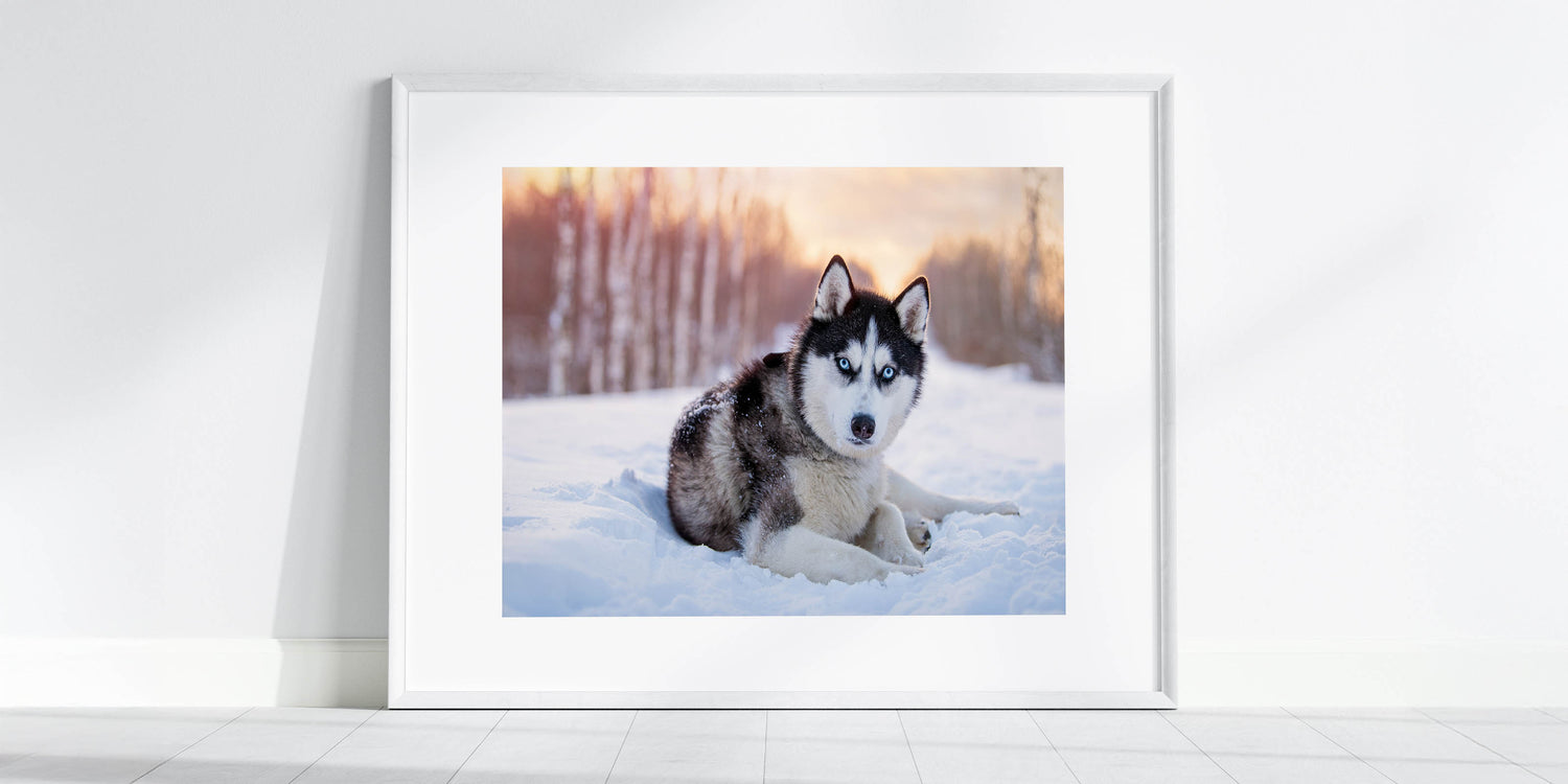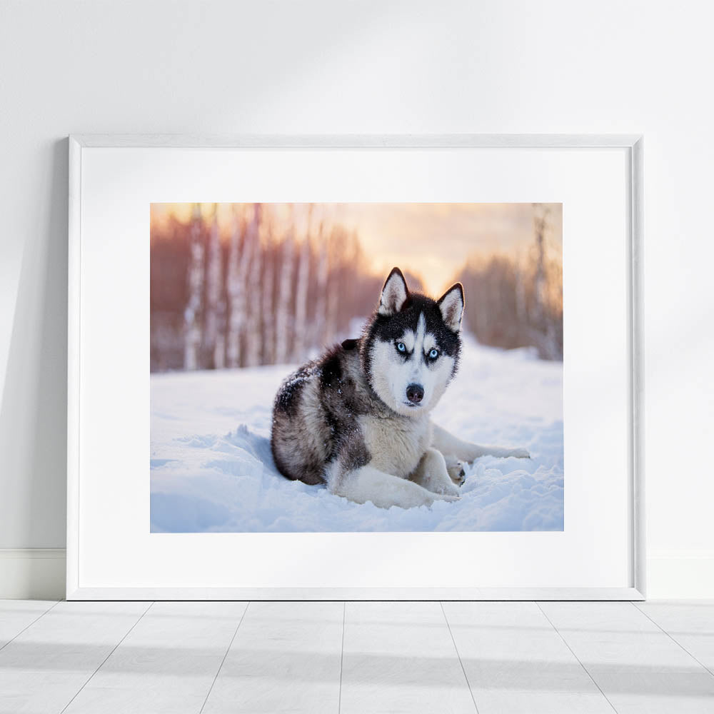 Transform your space with the captivating presence of this Husky in a winter wonderland. Part of our Animal Art Collection, this piece beautifully captures the striking features and intense gaze of the Husky, set against a serene snowy backdrop. Perfect for dog lovers and art enthusiasts, this artwork is available in multiple formats to suit any decor style.