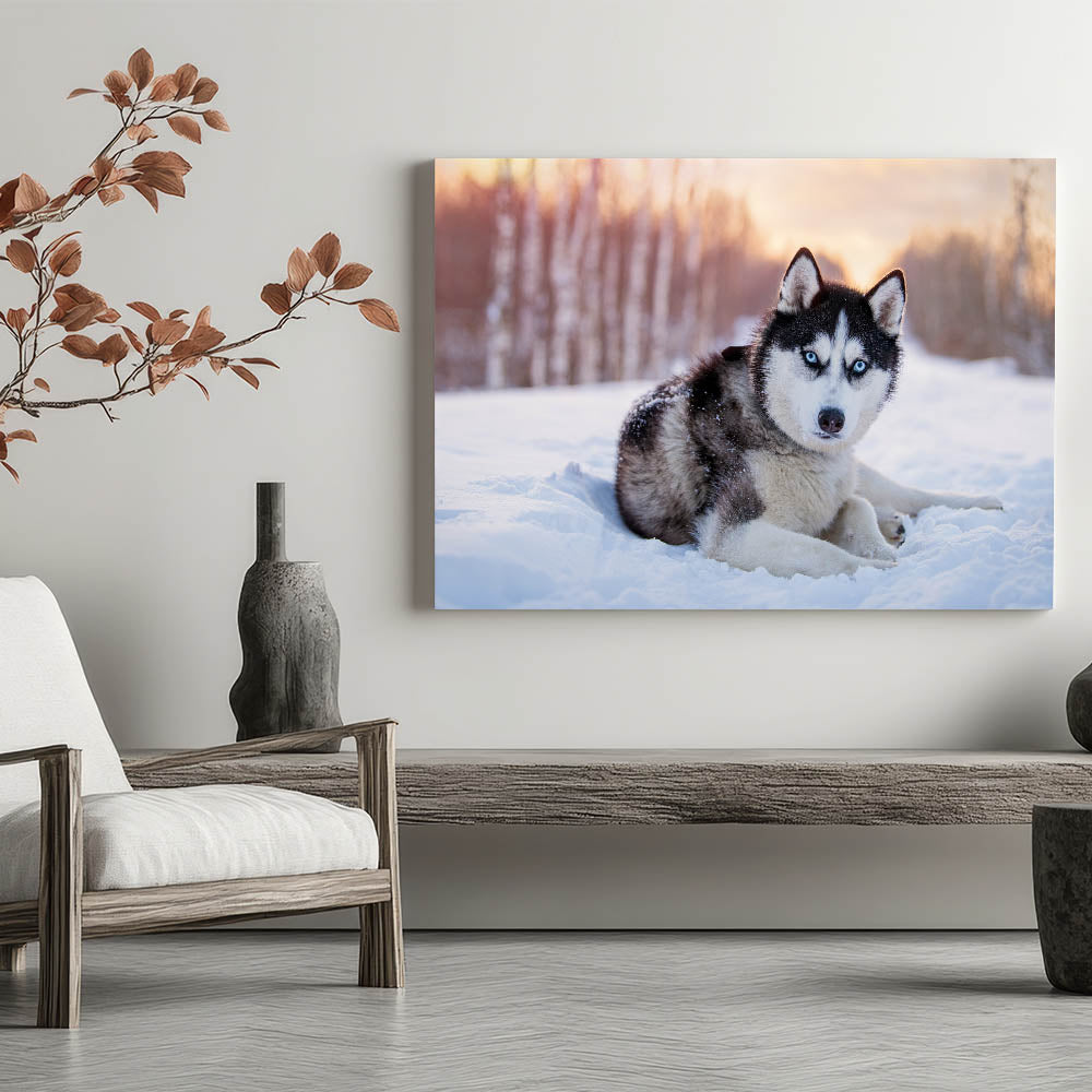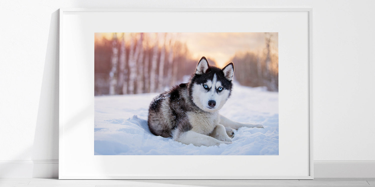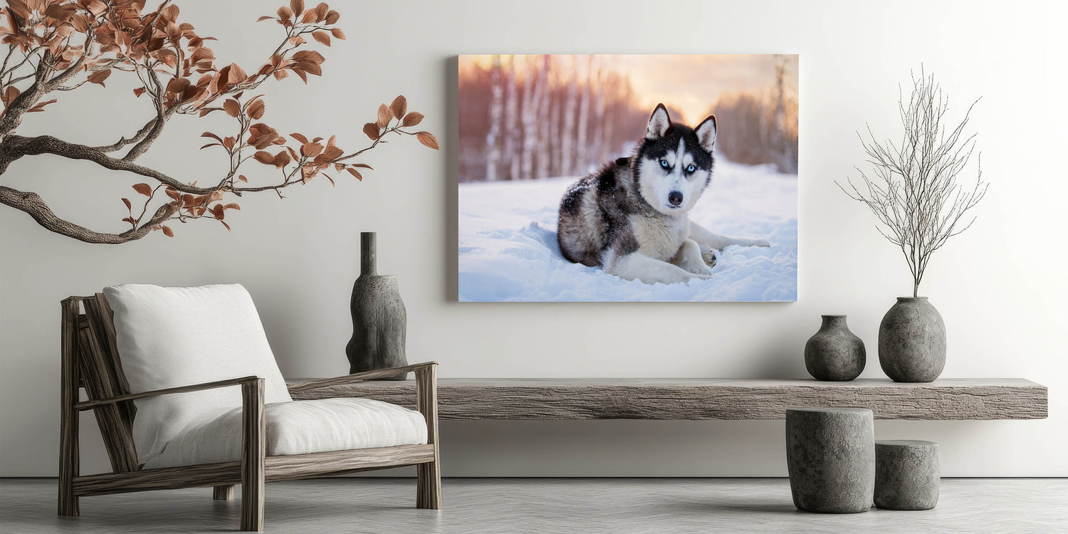 Transform your space with the captivating presence of this Husky in a winter wonderland. Part of our Animal Art Collection, this piece beautifully captures the striking features and intense gaze of the Husky, set against a serene snowy backdrop. Perfect for dog lovers and art enthusiasts, this artwork is available in multiple formats to suit any decor style.
