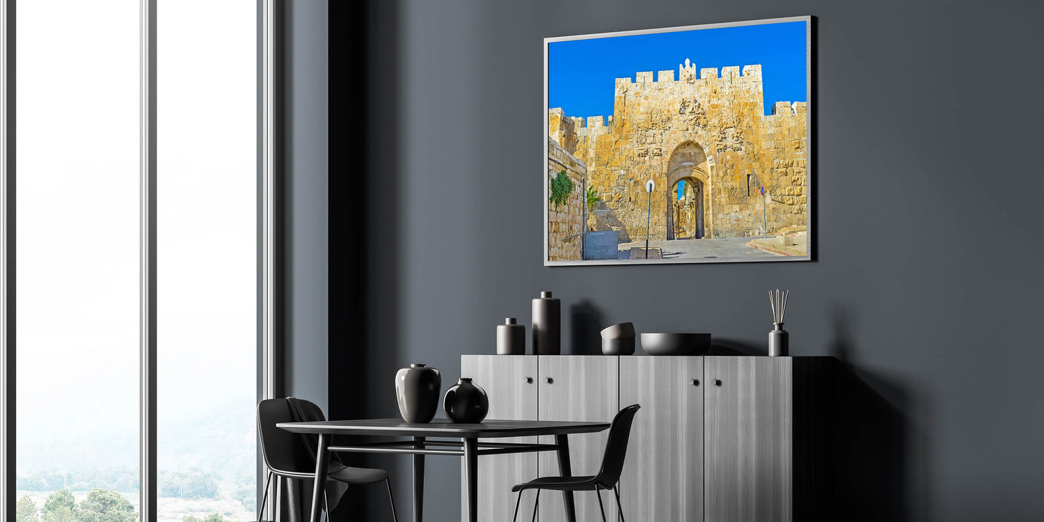 This piece brings Jerusalem's history and architectural beauty into your space, making it a perfect conversation starter. Whether you’re decorating a living room, study, or office, this high-quality artwork captures the essence of one of the world's most significant cities.