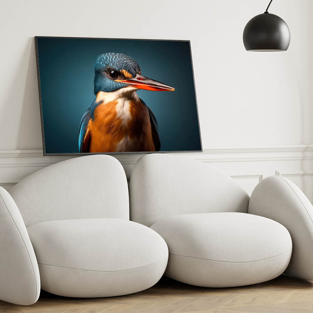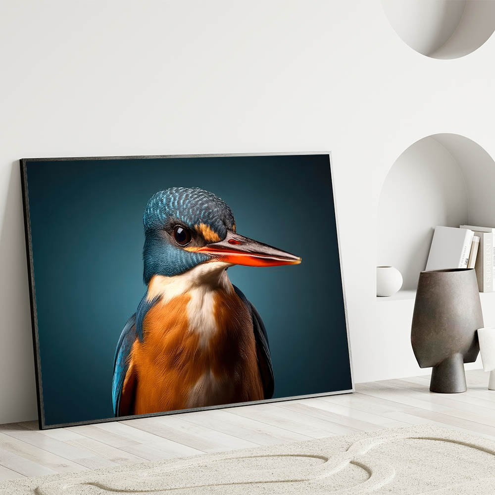 Enhance your space with the refined beauty of this Kingfisher Portrait Wall Art. This stunning artwork captures the intricate details and vibrant colors of a kingfisher, showcasing its regal posture and captivating gaze. The rich blue and orange hues contrast beautifully against the soft background, making this piece an elegant addition to any room. Perfect for those who appreciate the beauty of wildlife and desire to bring a touch of nature indoors.