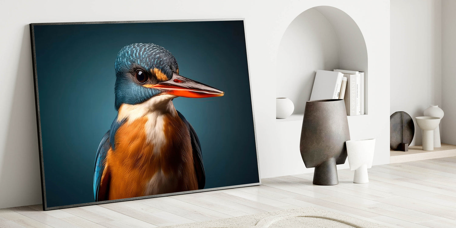 This piece of Tropical Birds artwork is not just a decor item; it's a celebration of nature's elegance. Whether you choose canvas, acrylic, or a framed print, this kingfisher portrait will add a serene and sophisticated touch to your home.