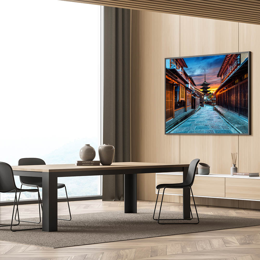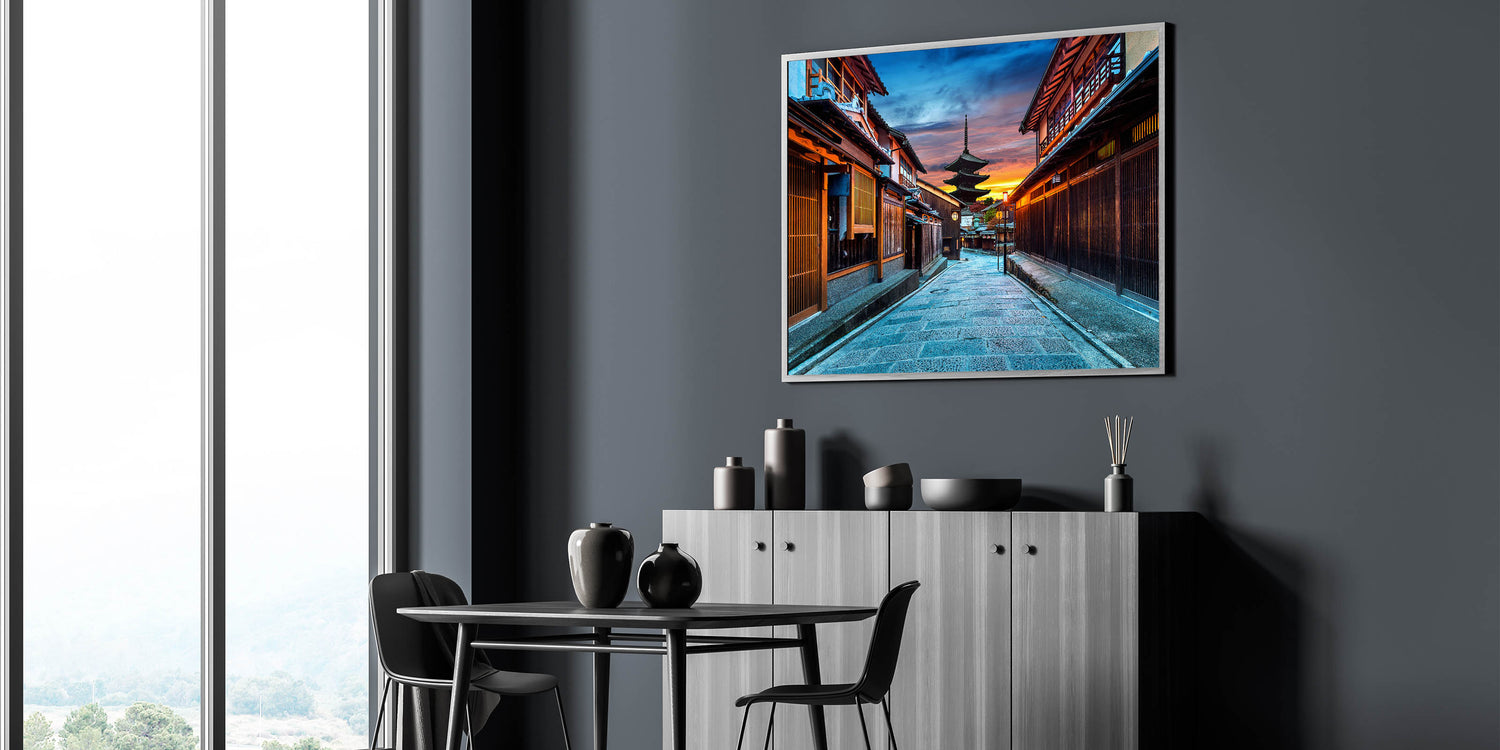 This Kyoto cityscape print brings together the beauty of Japanese tradition and natural wonder, making it a unique and captivating addition to your art collection.