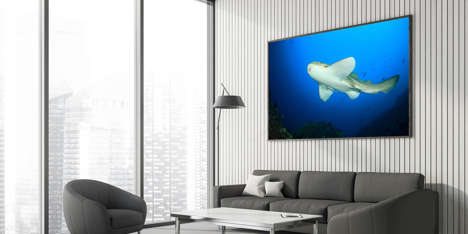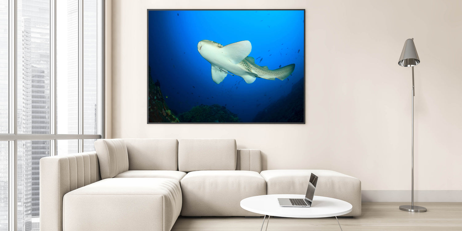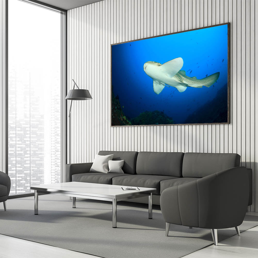 Dive into the depths of the ocean with this captivating wall art showcasing a leopard shark swimming gracefully in Thailand’s vibrant marine waters. This canvas print captures the beauty and elegance of one of the ocean's most fascinating creatures, set against a vivid blue underwater backdrop.