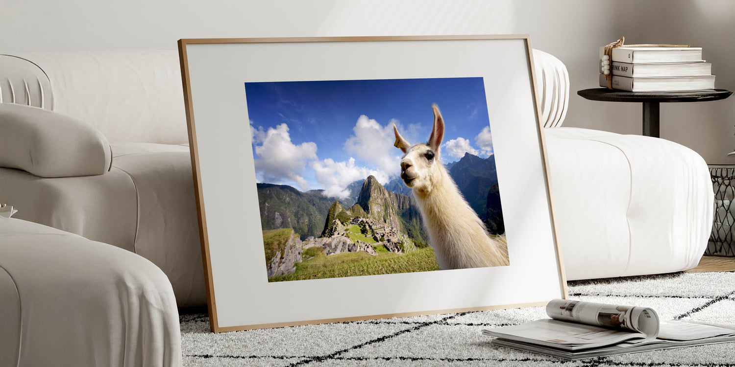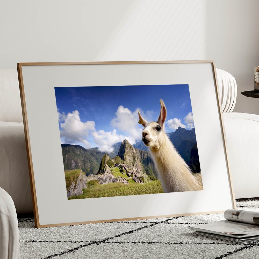 Llama at Machu Picchu Wall Art - Scenic Canvas & Framed Prints for Travel Lovers