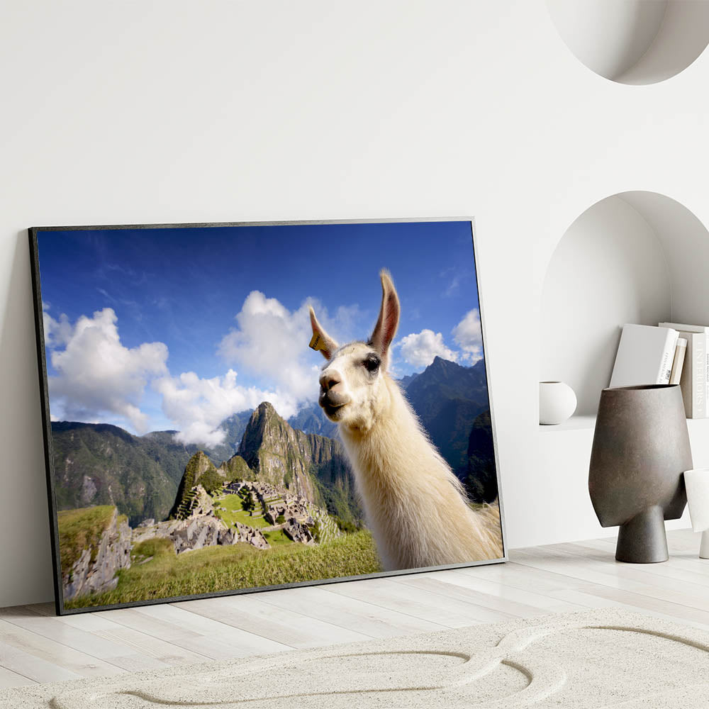 Bring the wonder and mystique of Machu Picchu into your home with this Llama at Machu Picchu Wall Art, inspiring wanderlust and appreciation for world heritage.