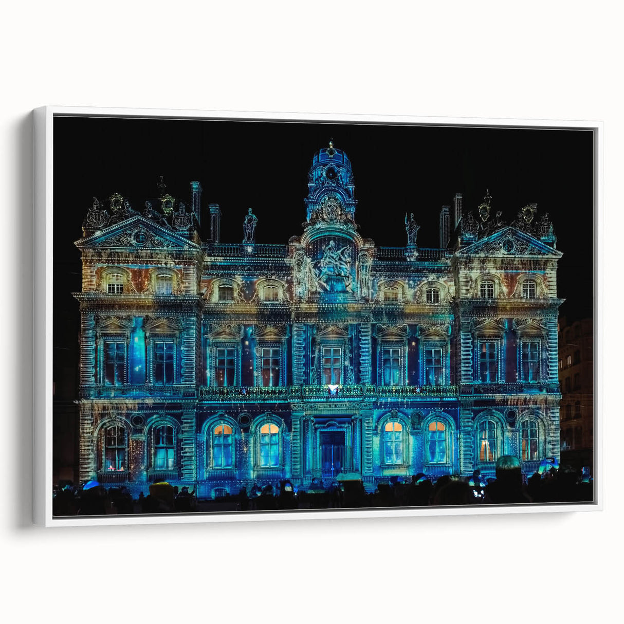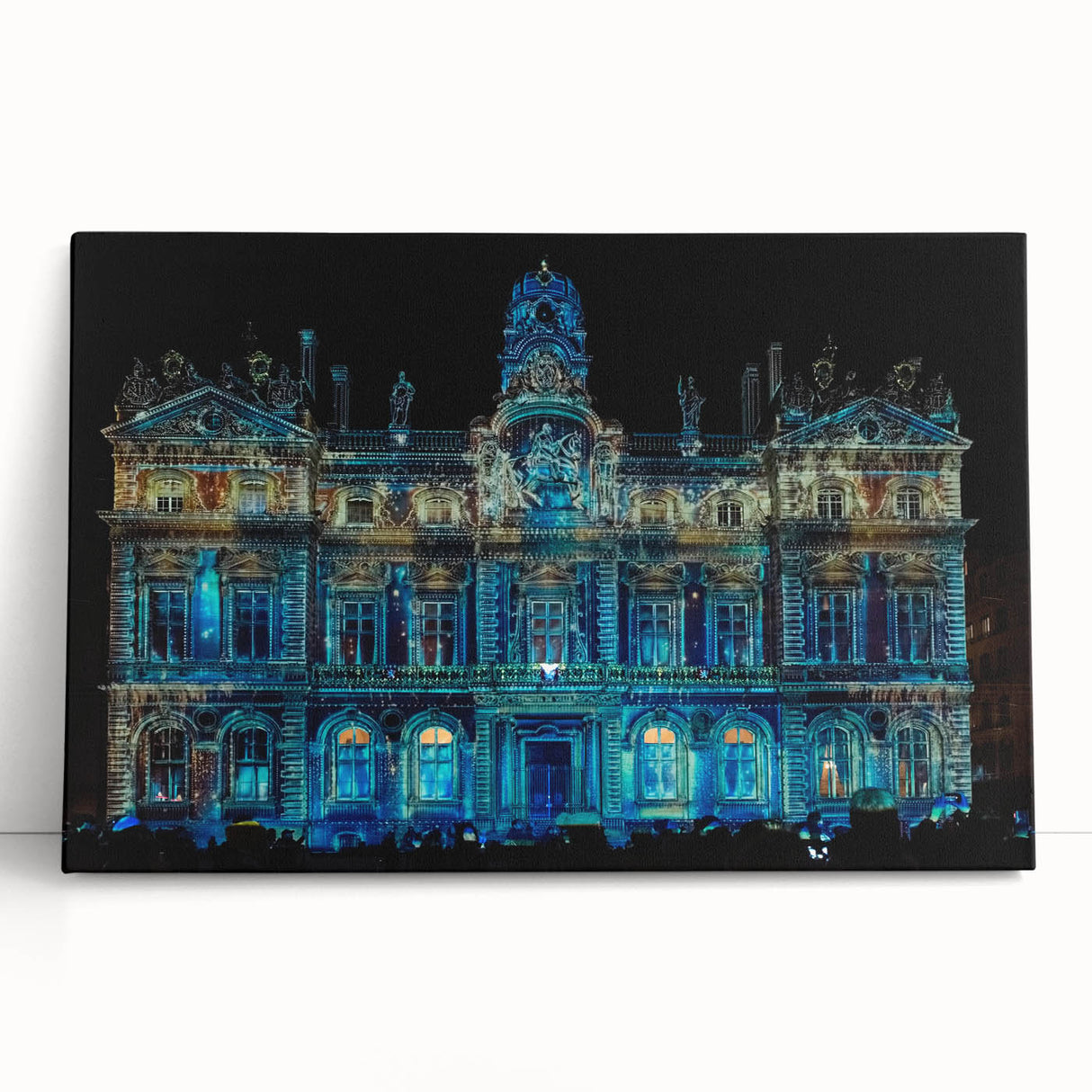 Lyon Cityscape Print - Festival of Lights Blue Illumination on Hôtel de Ville