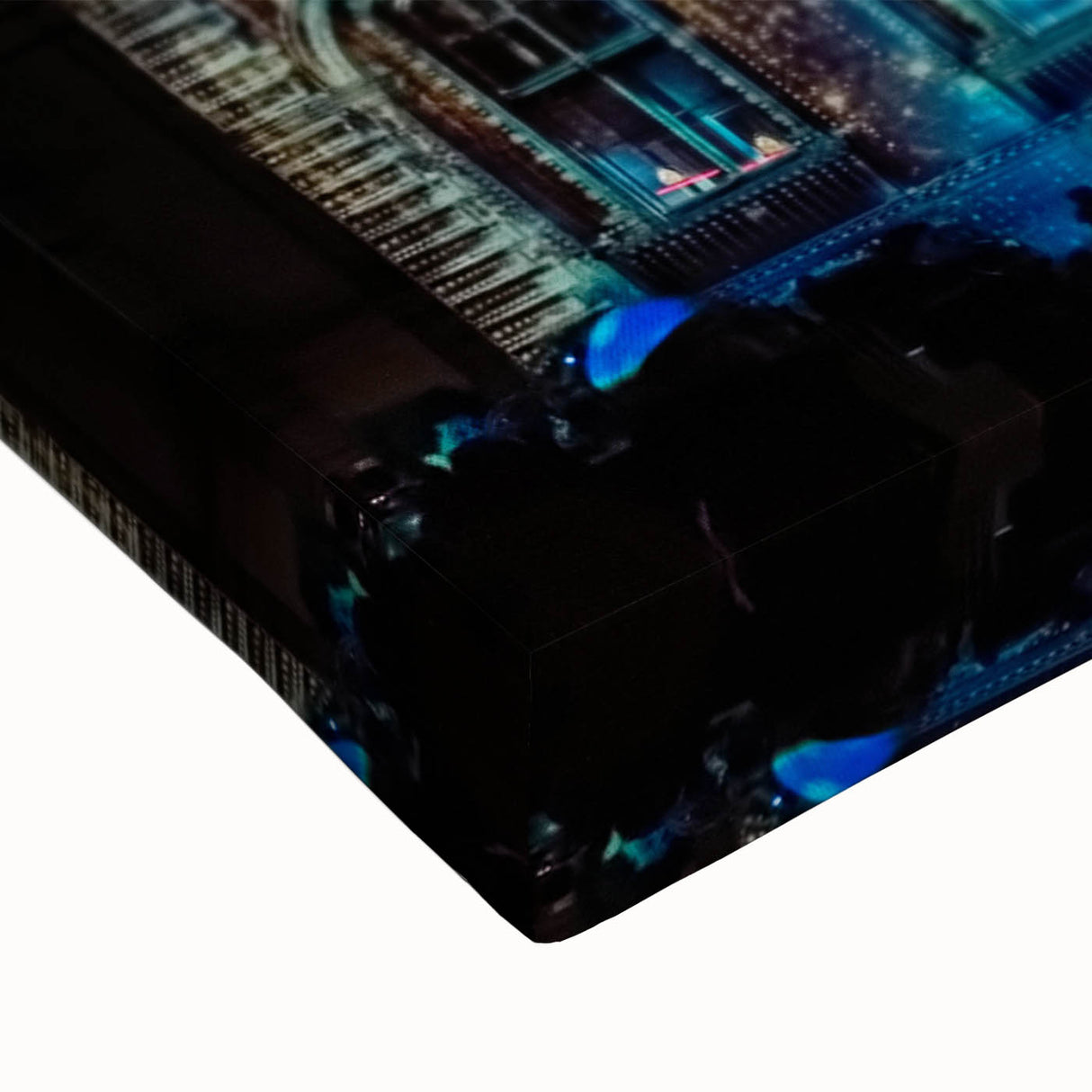 - High-quality reproduction of Lyon’s Hôtel de Ville, lit up in vibrant blue during the Festival of Lights.