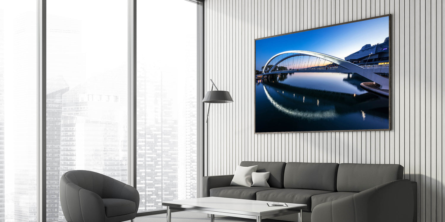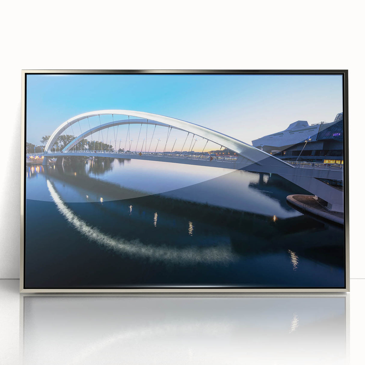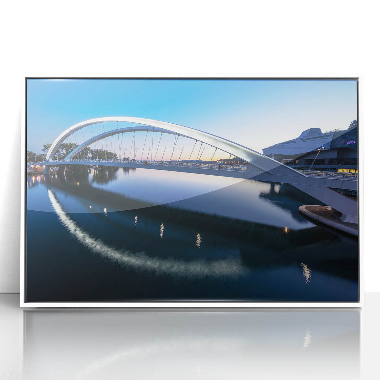 Bring a touch of modern elegance to your space with this Lyon cityscape print, showcasing the stunning architectural beauty of Lyon's contemporary bridge over the river at twilight. The smooth lines of the bridge, reflecting gracefully over the water, combined with the serene colors of the evening sky, make this piece perfect for those who appreciate modern art and urban landscapes. This scenic Lyon artwork captures the harmony between modern design and nature, creating a calming yet stylish atmosphere.