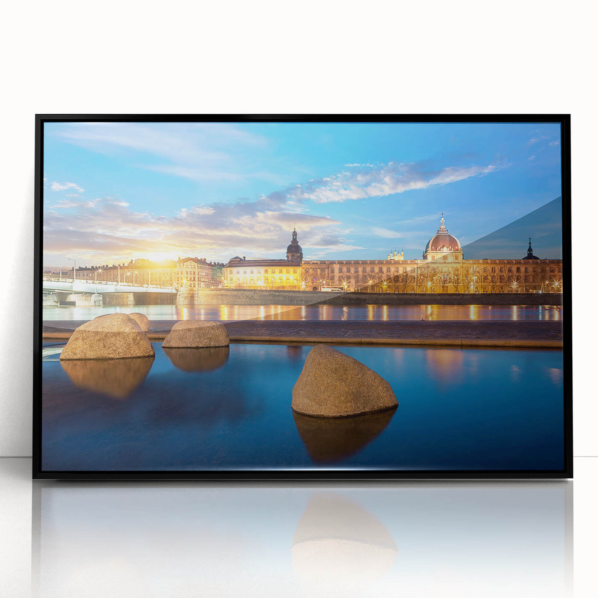 Lyon Cityscape Print - Sunset View Over Rhône River and Historic Lyon