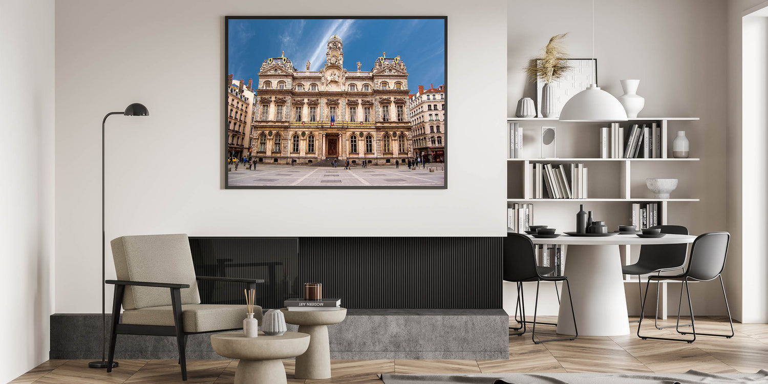 - High-quality prints showcasing the vibrant architecture of Lyon’s Hôtel de Ville.