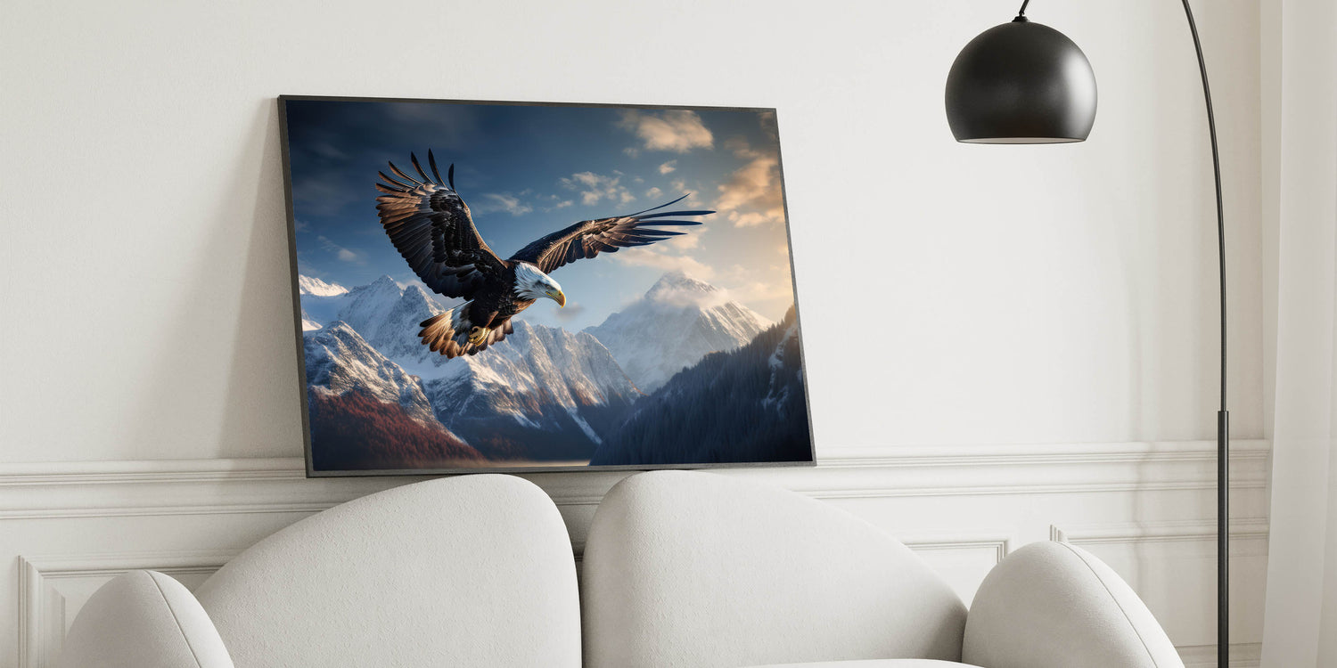 - Breathtaking Imagery: The eagle's commanding presence against the stunning mountain backdrop adds a touch of grandeur to any room.