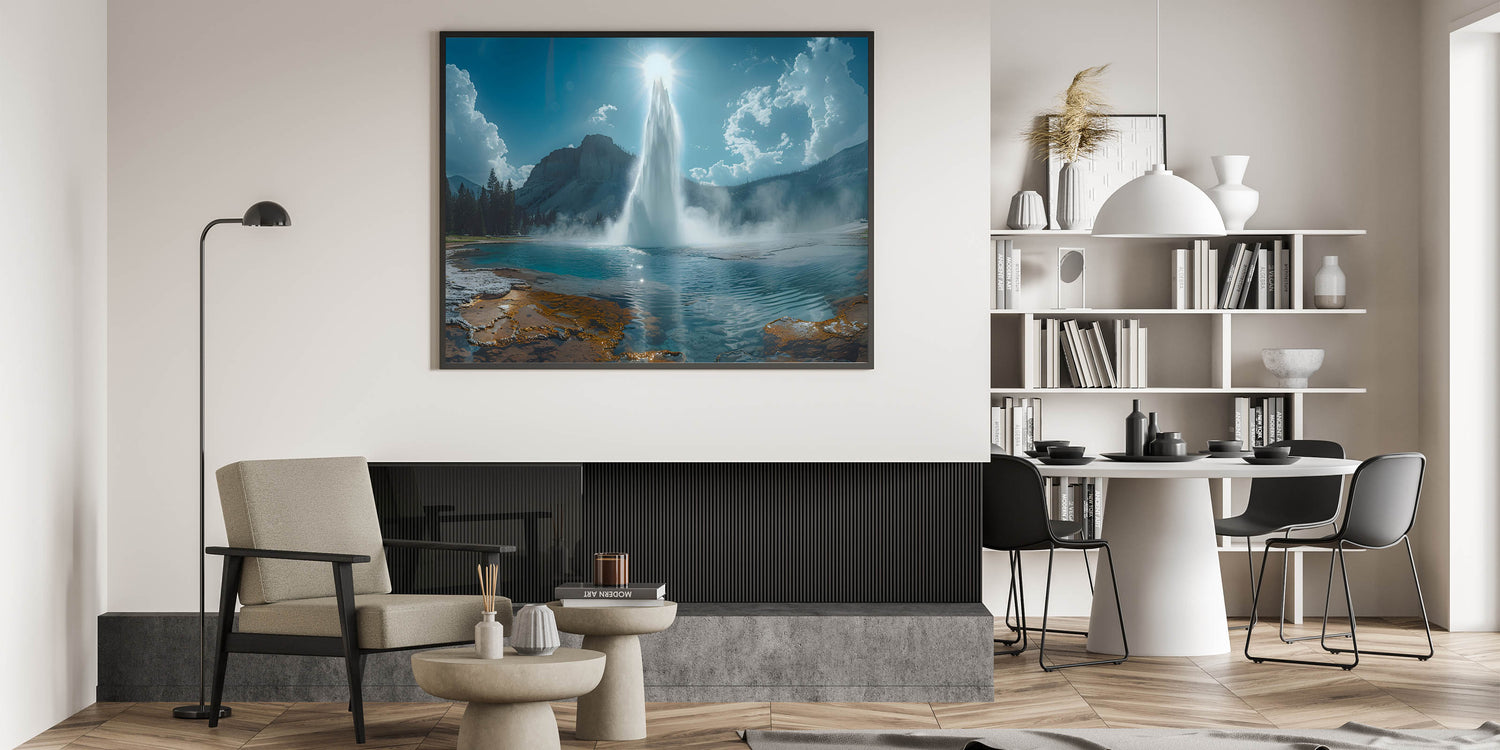 This beautiful natural geyser artwork is more than just a decorative piece; it’s a gateway to the serene and powerful beauty of the wilderness. Perfect for enhancing your living room, bedroom, or office, this geyser canvas print brings the majesty of nature indoors. Shop now and transform your space with this breathtaking landscape!