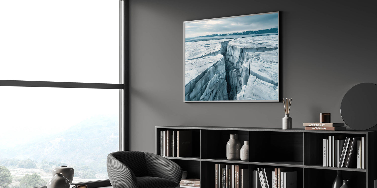 Whether you're captivated by the beauty of polar landscapes or seeking to enhance your decor with a modern, icy touch, this piece will elevate any room with its majestic and serene presence. Order now and let the majestic ice crevasse bring the Arctic's beauty into your home.