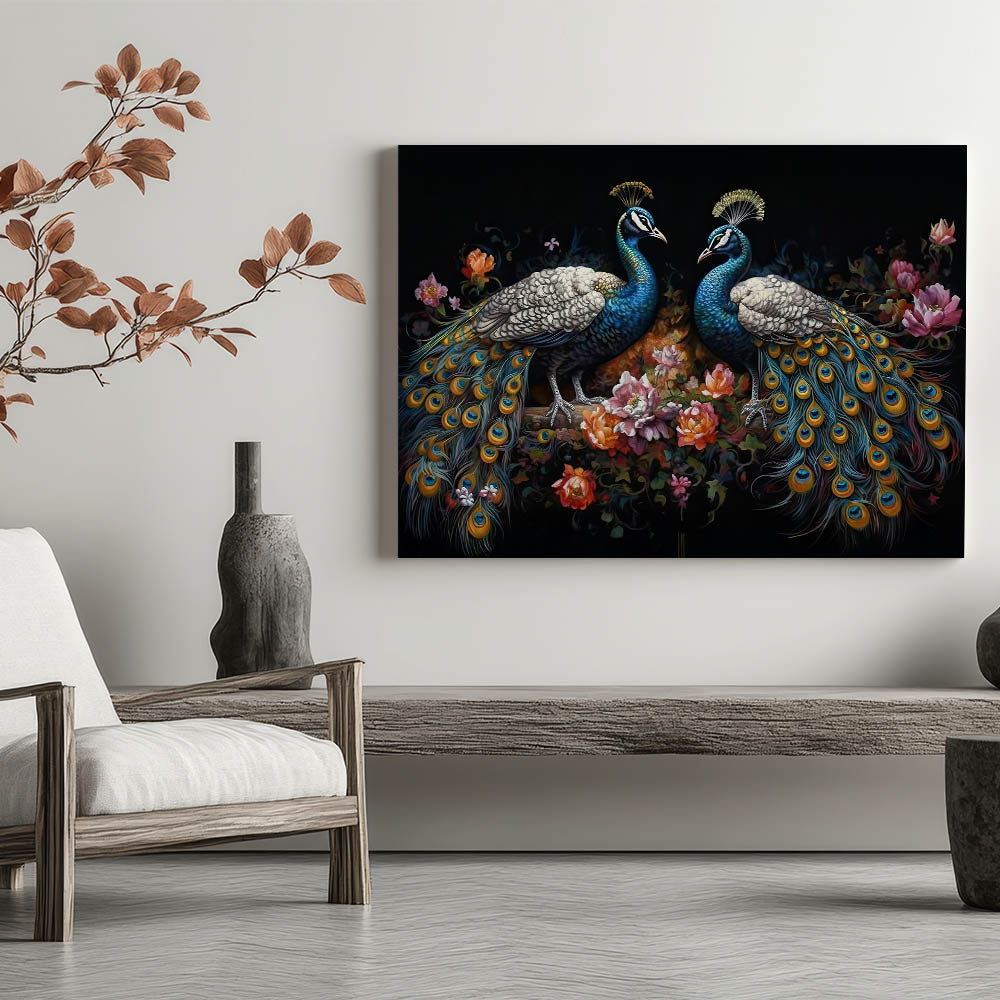 Majestic Peacock Pair Wall Art - Elegant Floral Peacock Canvas Decor