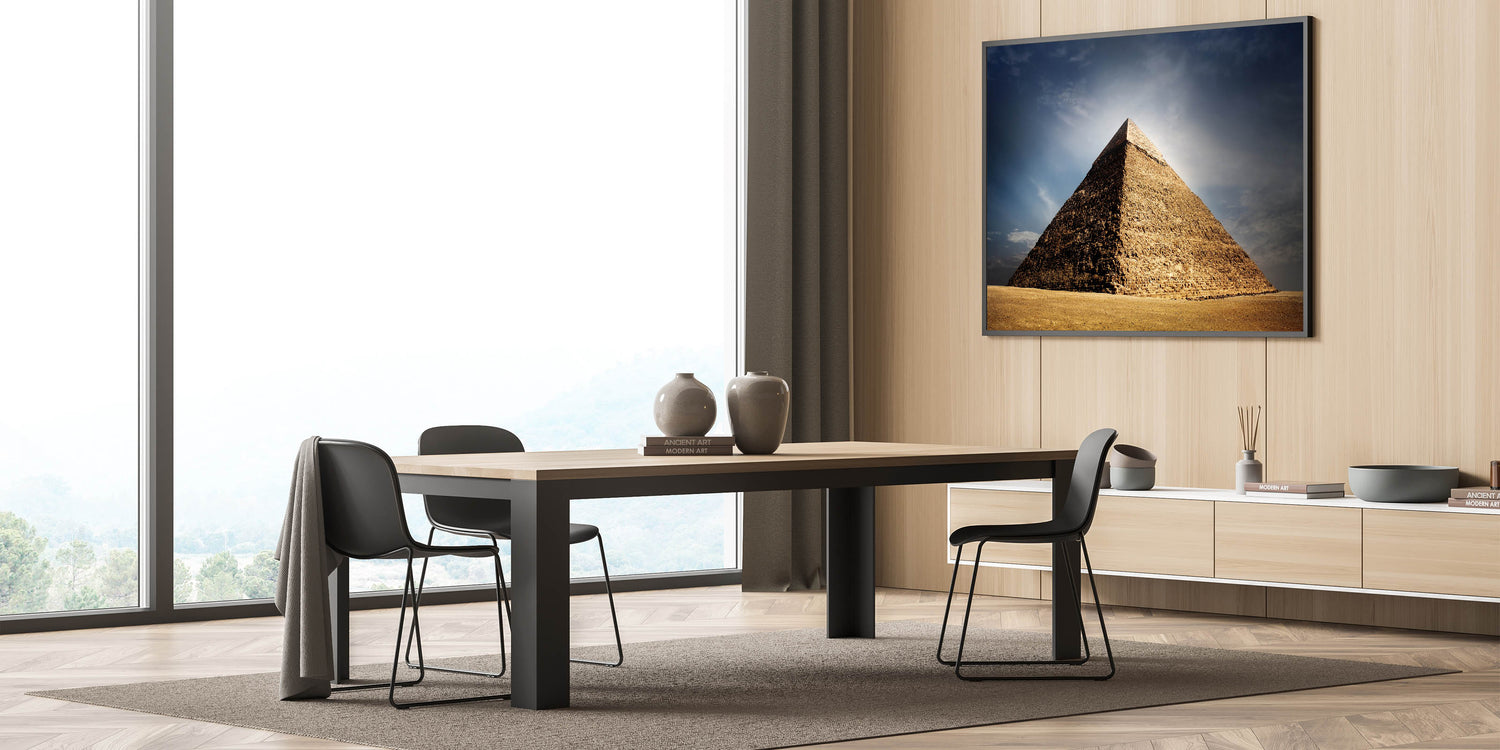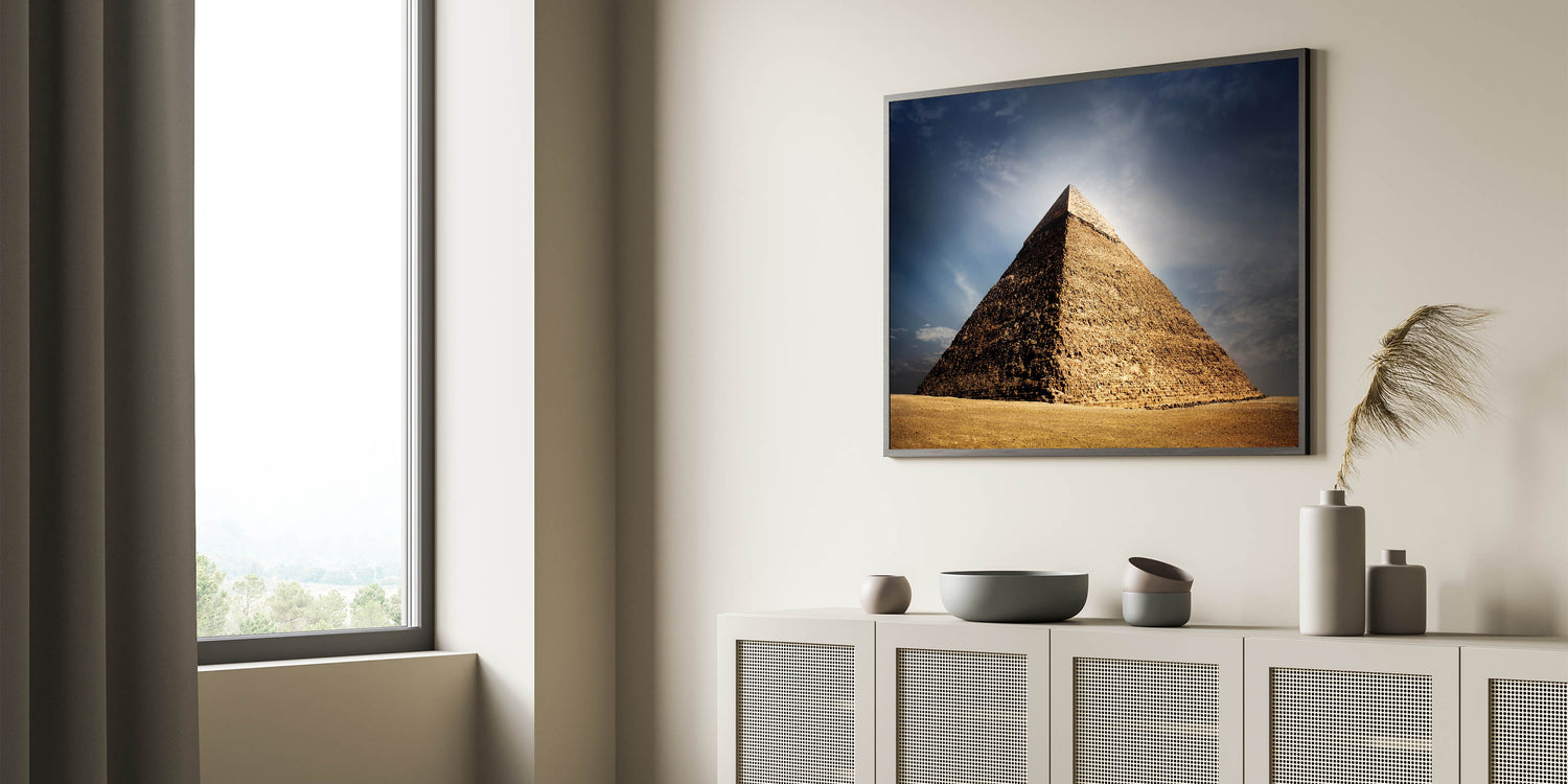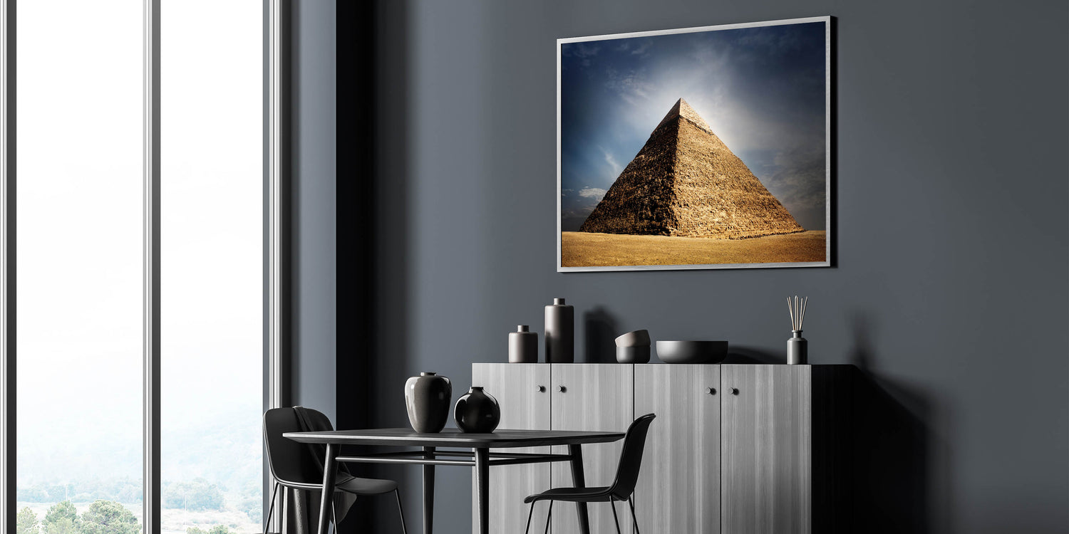 - Vivid Detailing: High-resolution printing captures every detail of the pyramid’s intricate stonework and the dramatic sky, making it a captivating centerpiece.