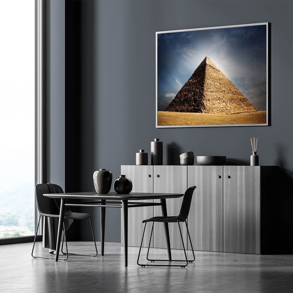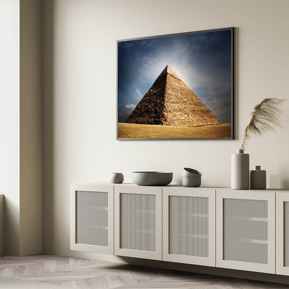 Transform your living space with the timeless allure of ancient Egypt. This stunning wall art features the iconic Great Pyramid of Giza, a masterpiece that symbolizes the grandeur and mystery of the ancient world. Perfect for history enthusiasts and those with a passion for cultural decor, this piece brings a touch of antiquity into any modern setting.
