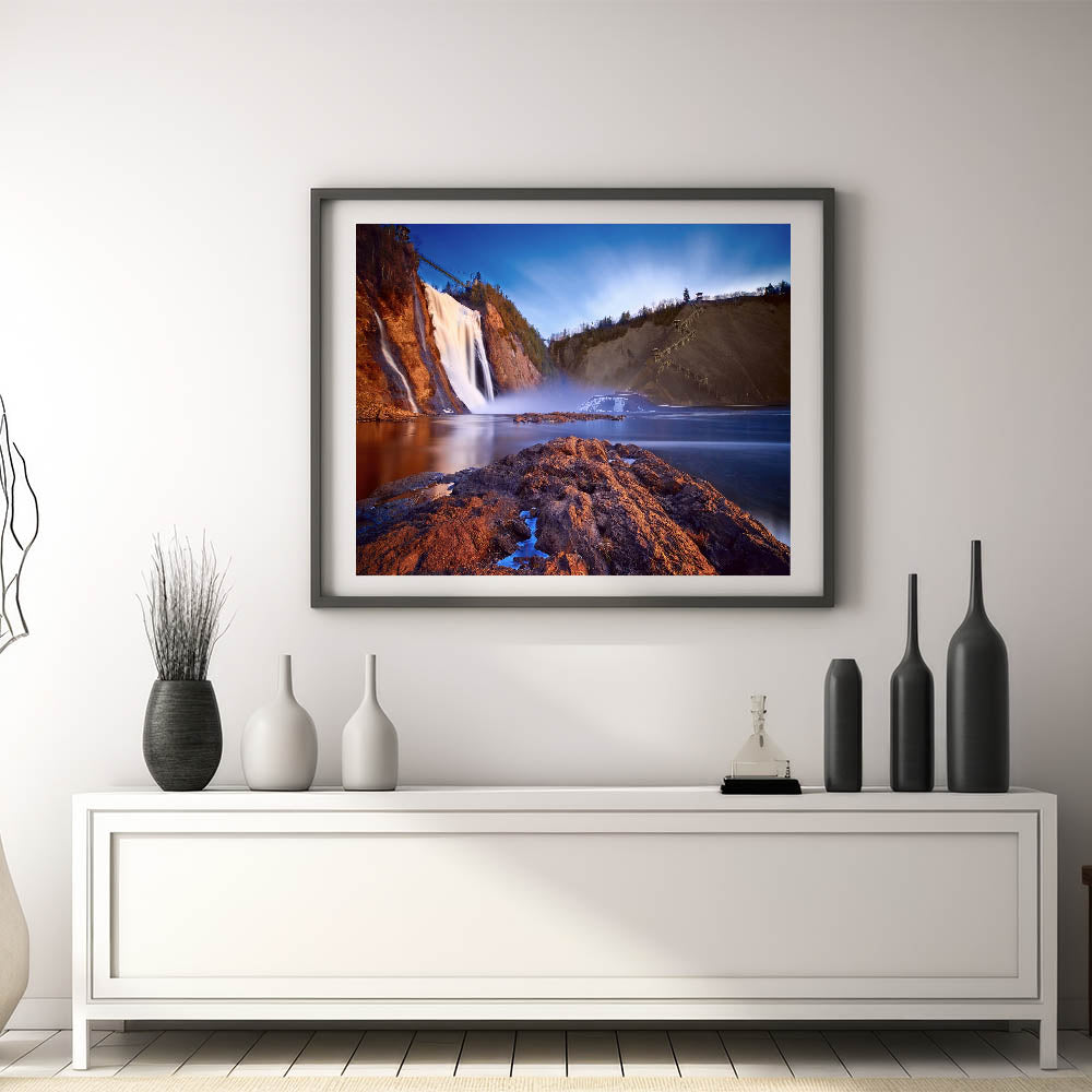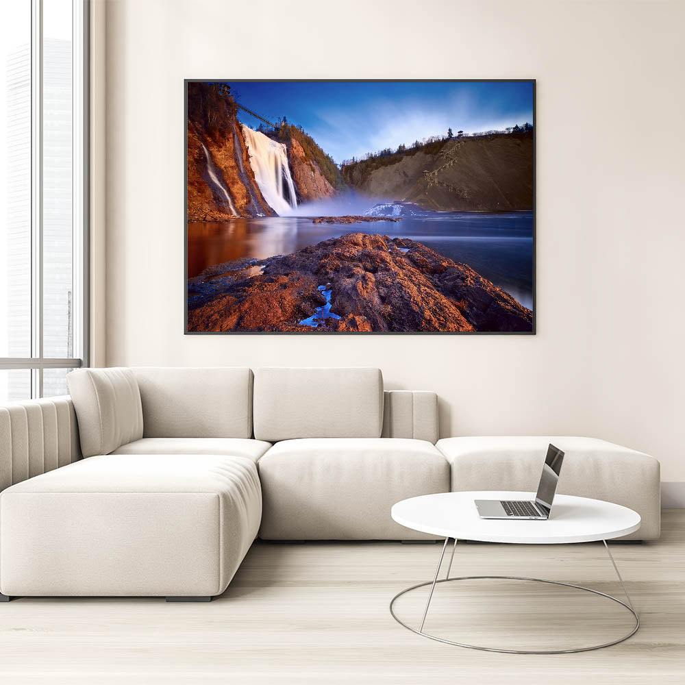 Bring the tranquility of Quebec’s majestic waterfall into your home. This stunning artwork is ideal for creating a peaceful, relaxing atmosphere, whether for yourself or as a unique gift.