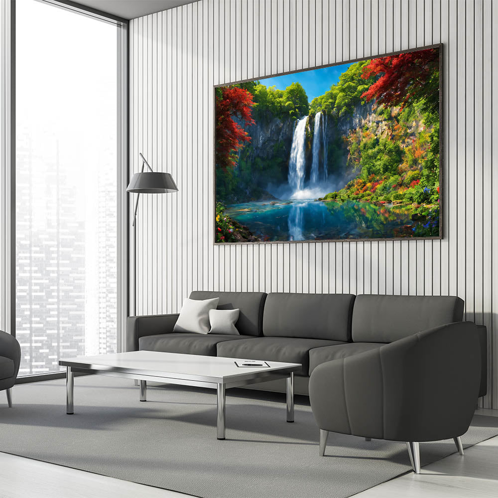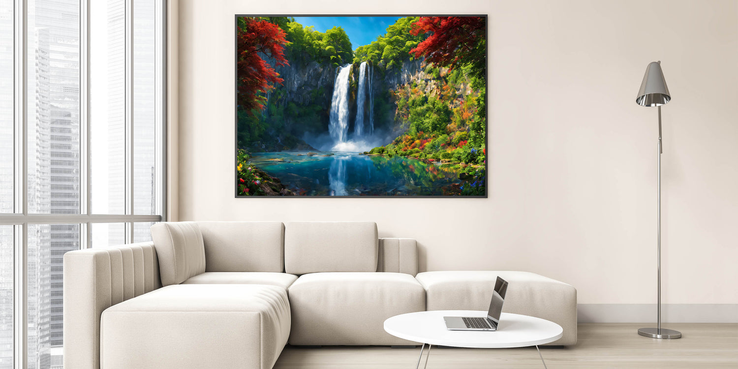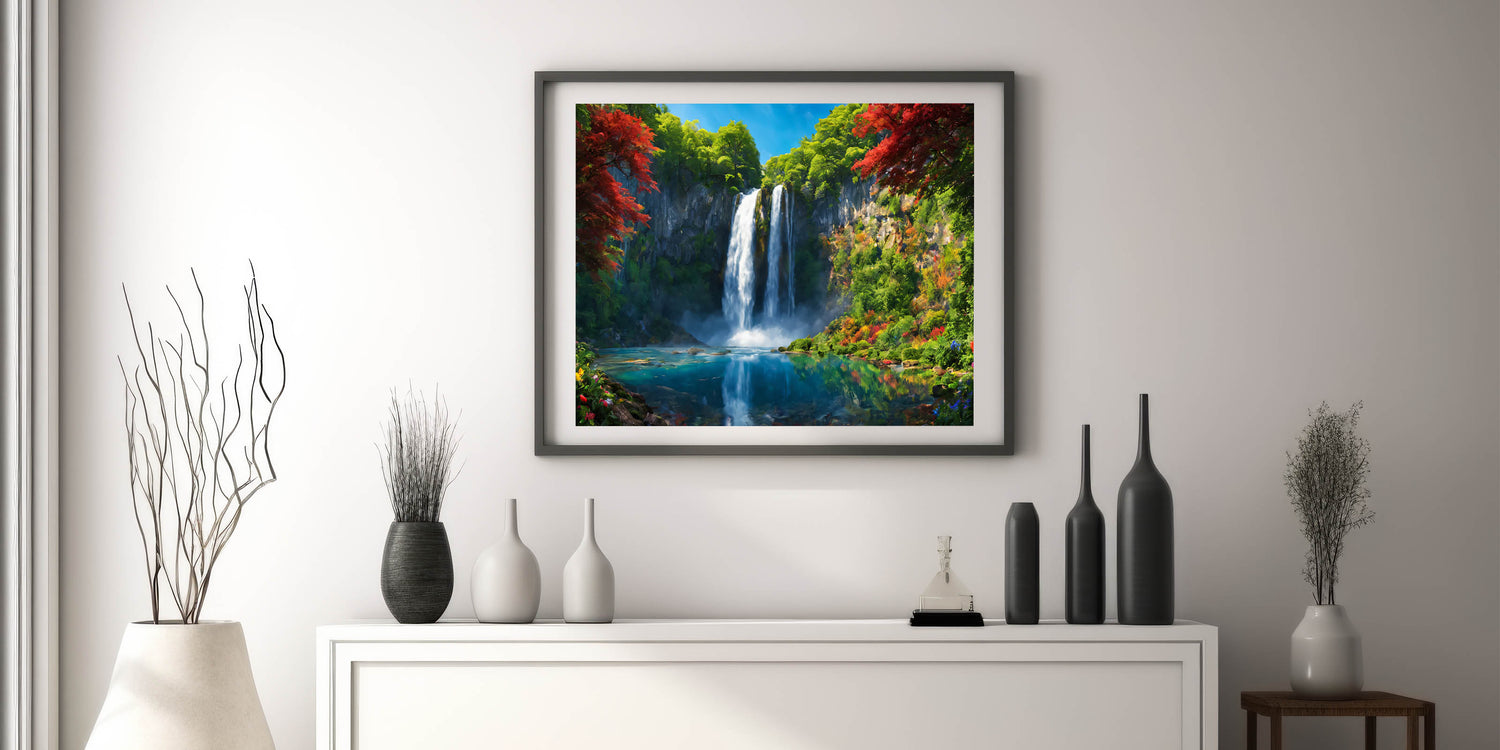 Enhance your space with this magnificent waterfall painting that captures the essence of natural beauty. Whether displayed in a modern or traditional setting, this artwork will bring a sense of tranquility and grandeur to your decor.