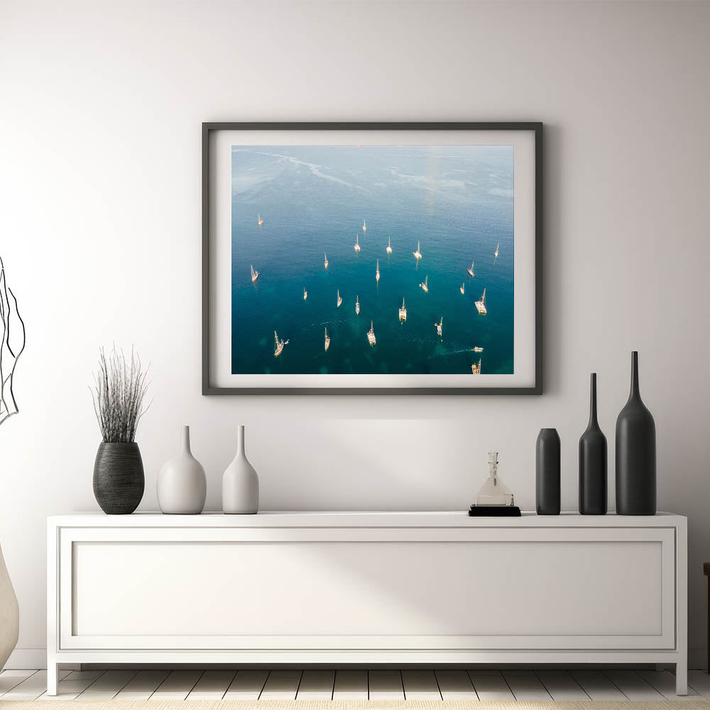 Enhance your home decor with this beautiful Martinique wall art, featuring a stunning aerial view of boats calmly anchored in the serene Caribbean waters. This piece captures the essence of tropical island life, blending the natural beauty of the Caribbean Sea with the charm of Martinique's coastal scenery.